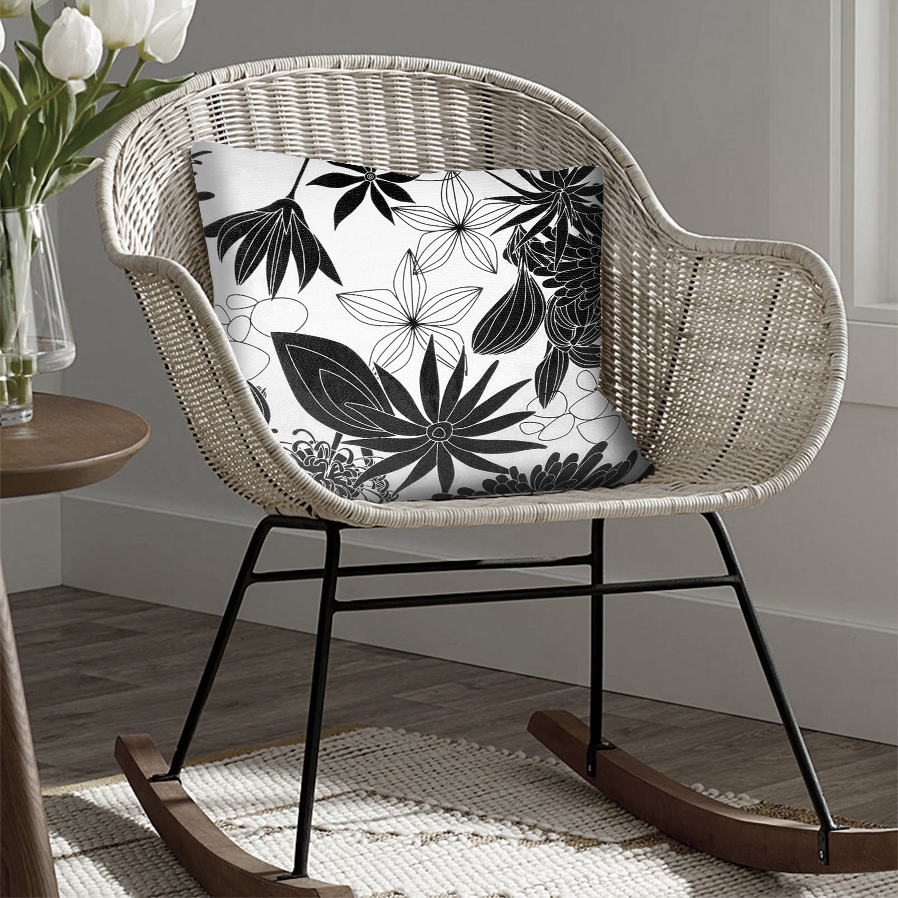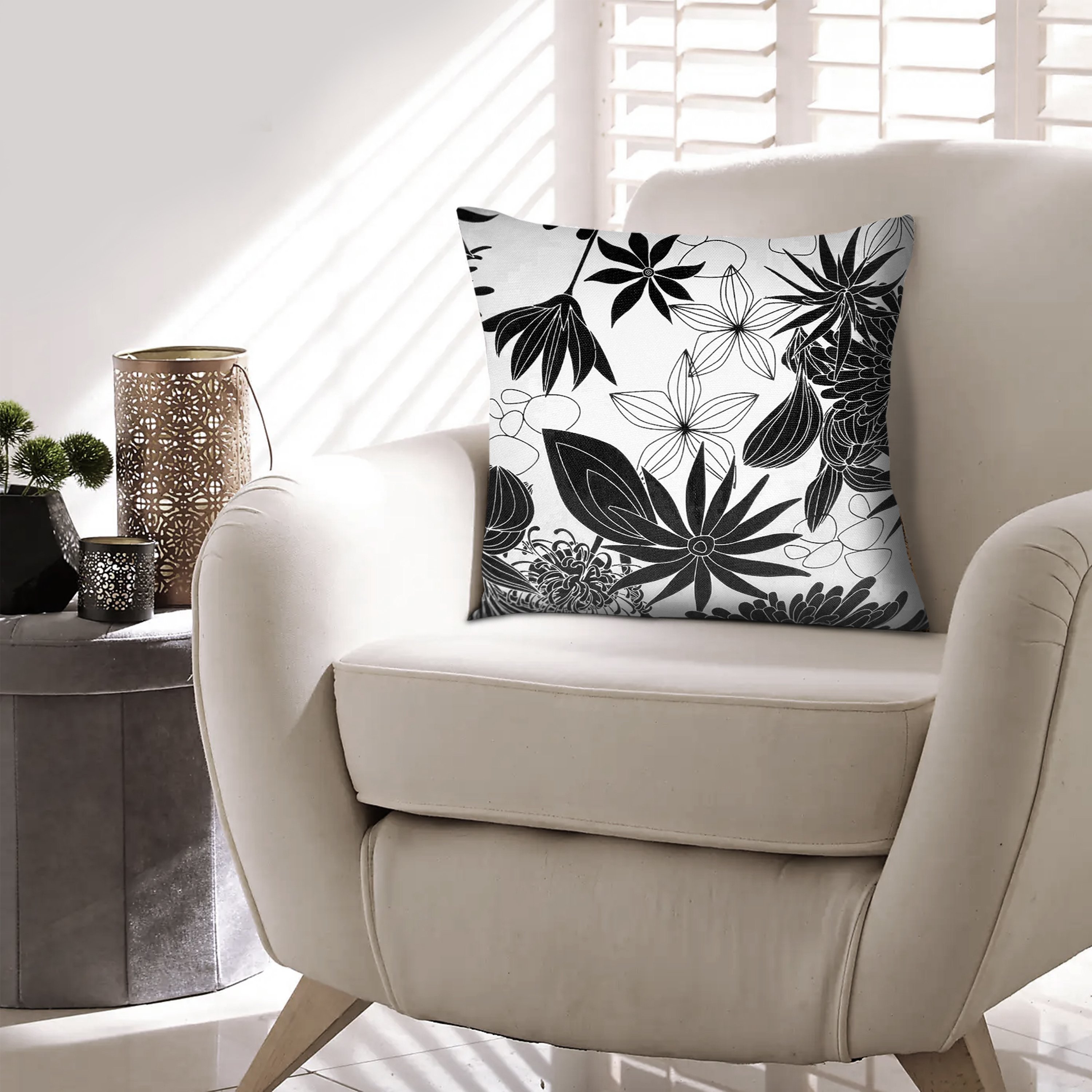 17 x 17 Inch Decorative Square Cotton Accent Throw Pillow with Classic Floral Print, Black and White