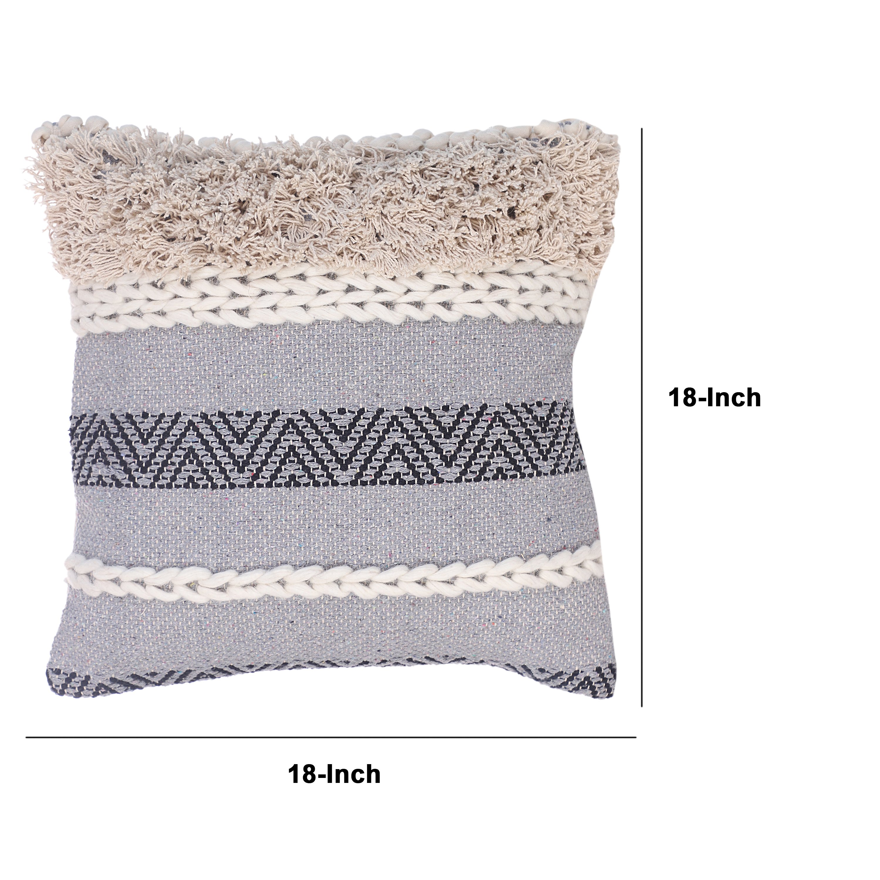 18 x 18 Cotton Accent Throw Pillows, Geometric Lined Pattern, Set of 2, Multicolor
