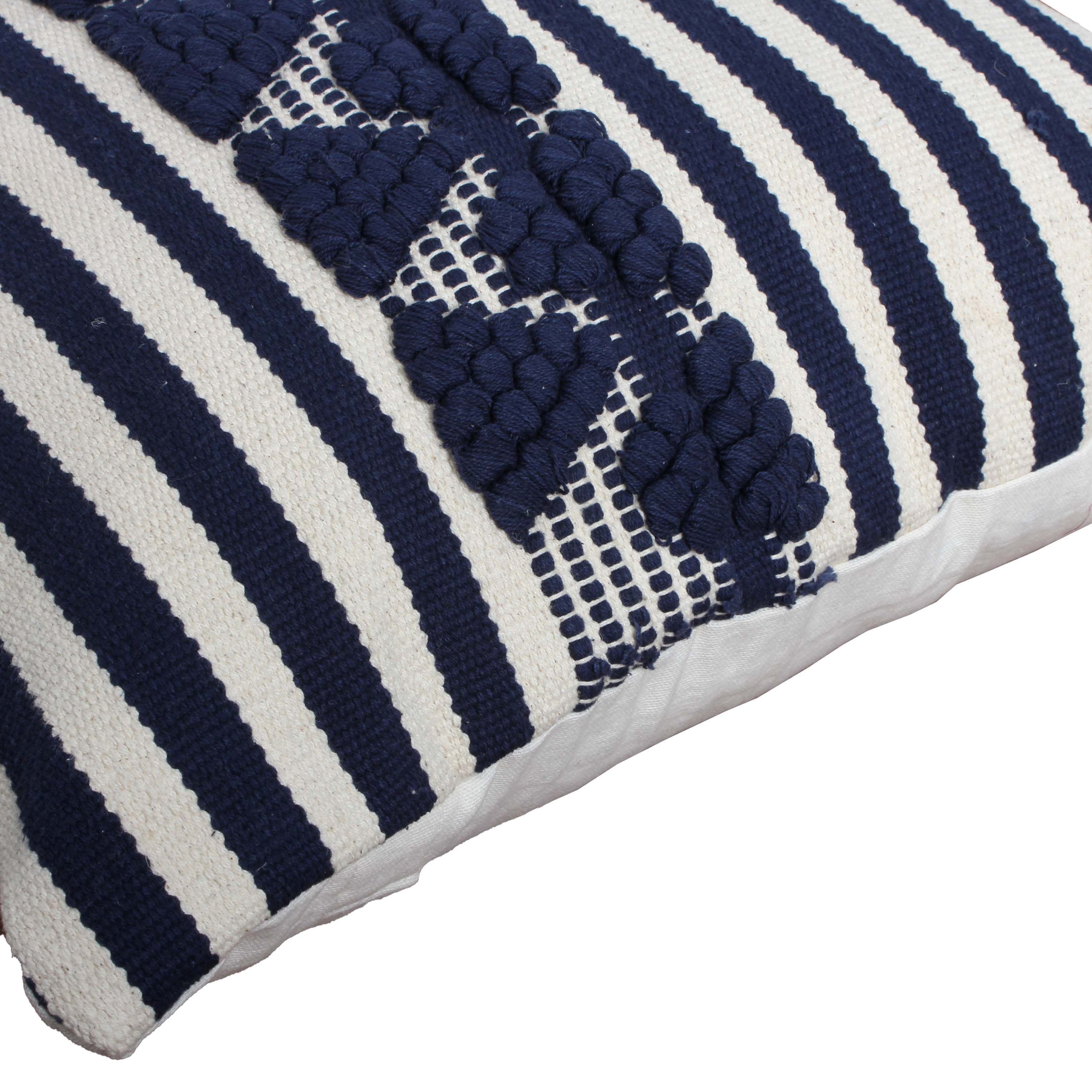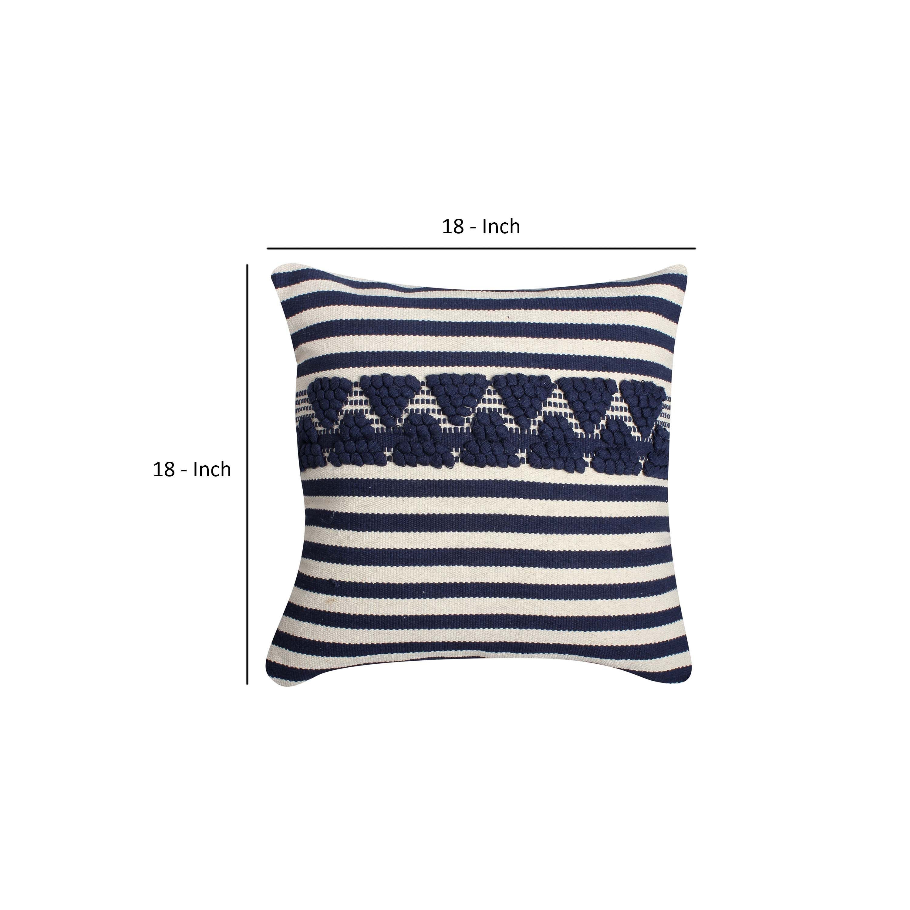 Home > 18 x 18 Handwoven Square Cotton Accent Throw Pillow, Classic Striped Pattern, Textured, White, Blue