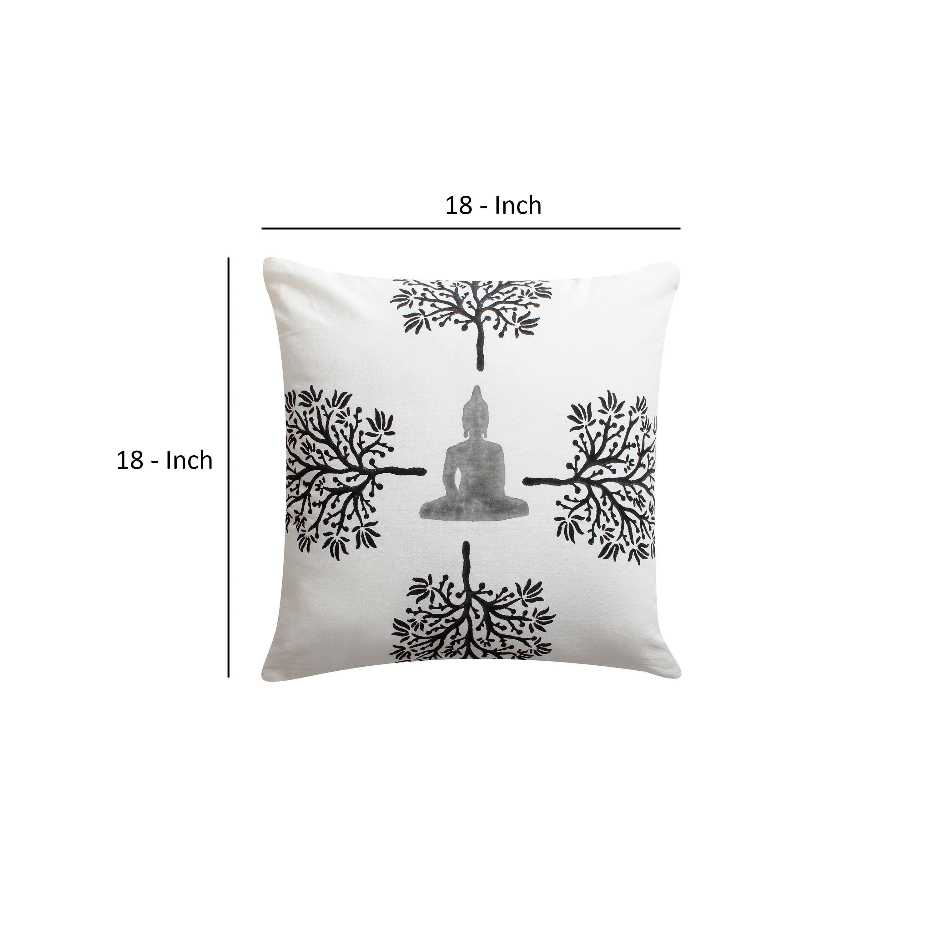 18 x 18 Square Cotton Accent Throw Pillow, Meditating Buddha, Tree Print, White, Black