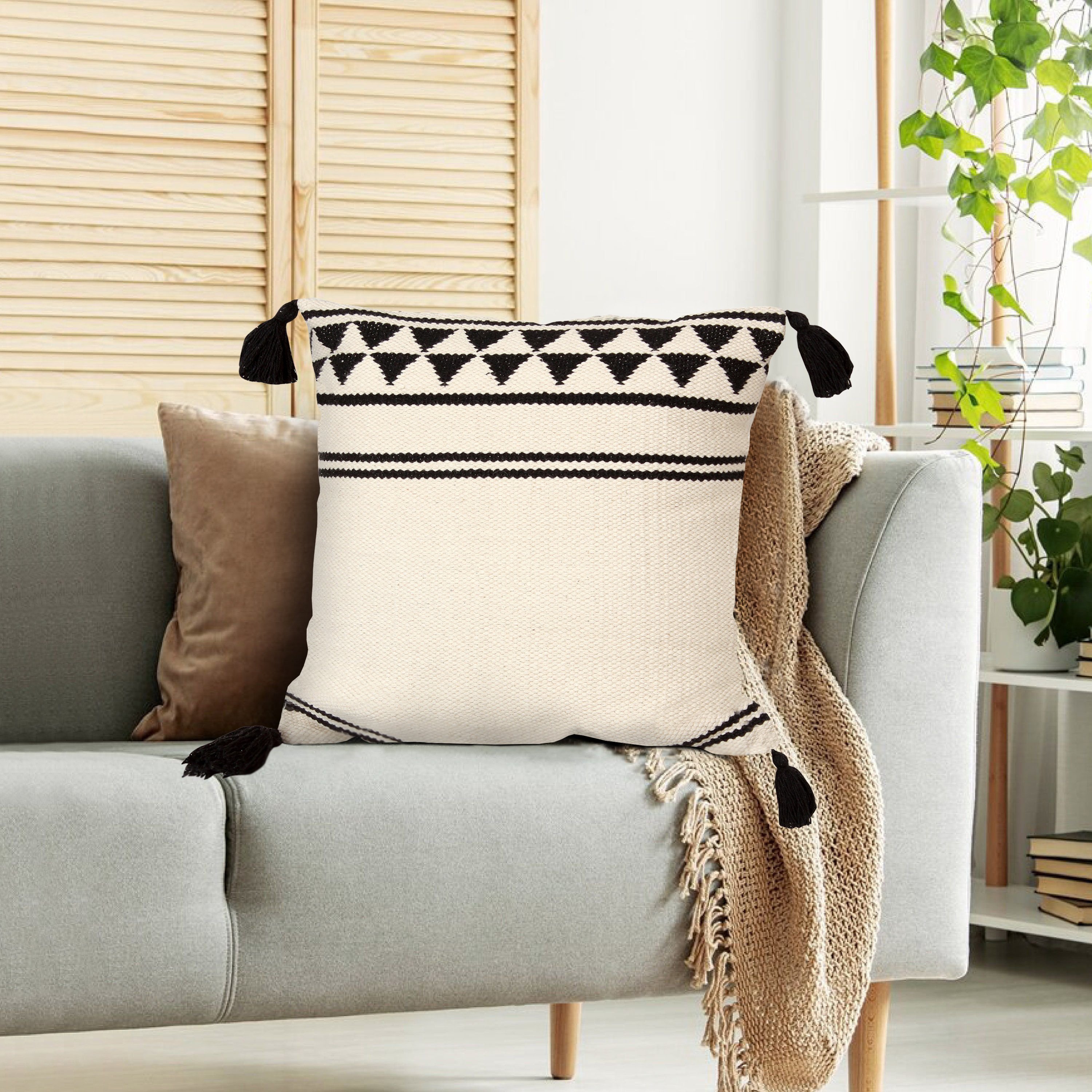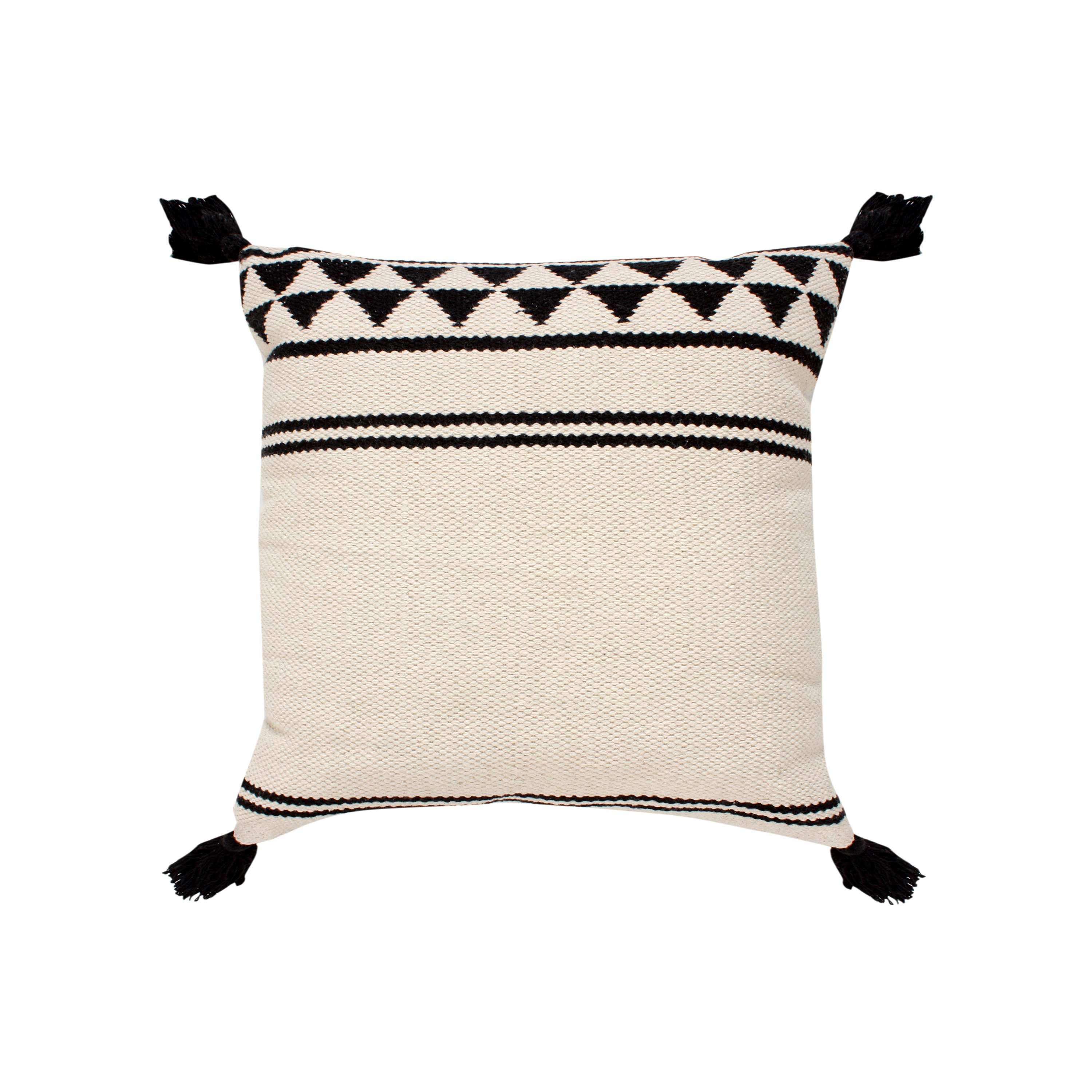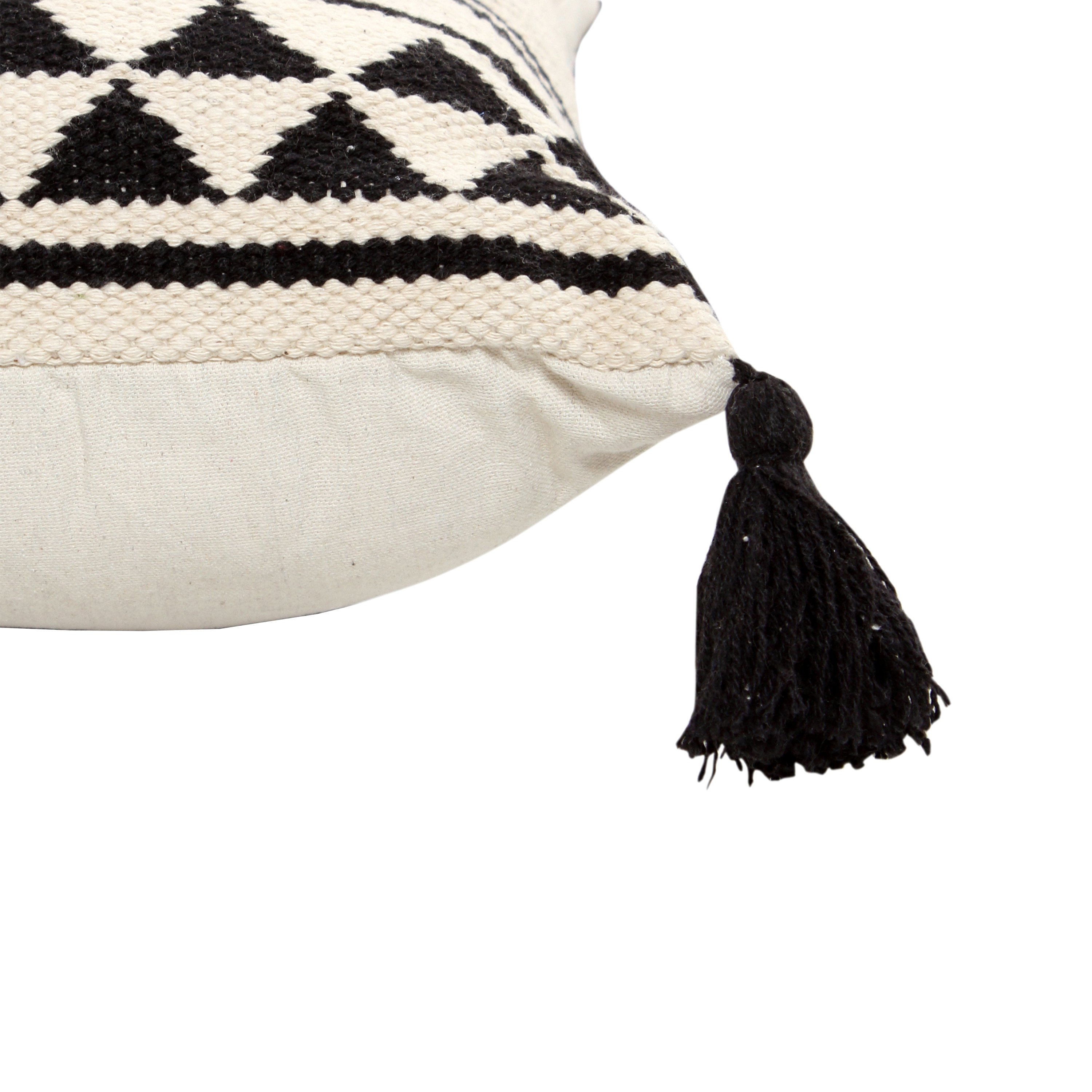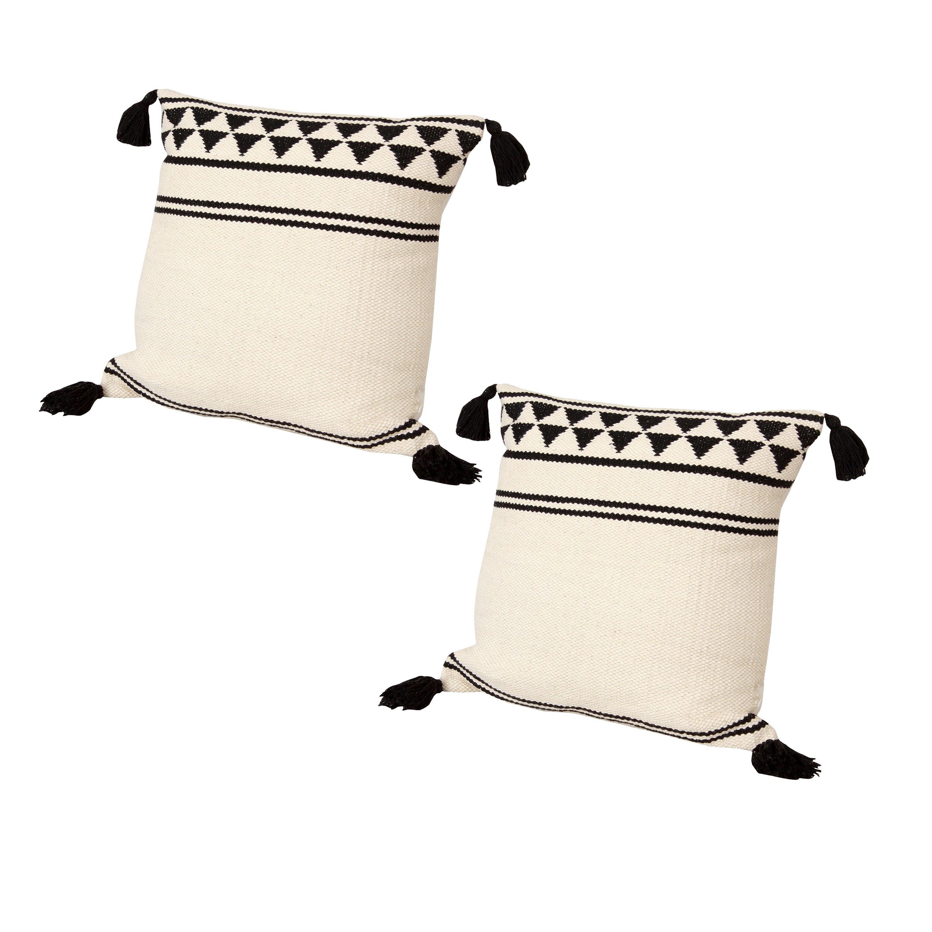 Home > 18 x 18 Square Cotton Accent Throw Pillow with Simple Striped Pattern and Tassels, Set of 2, White and Black