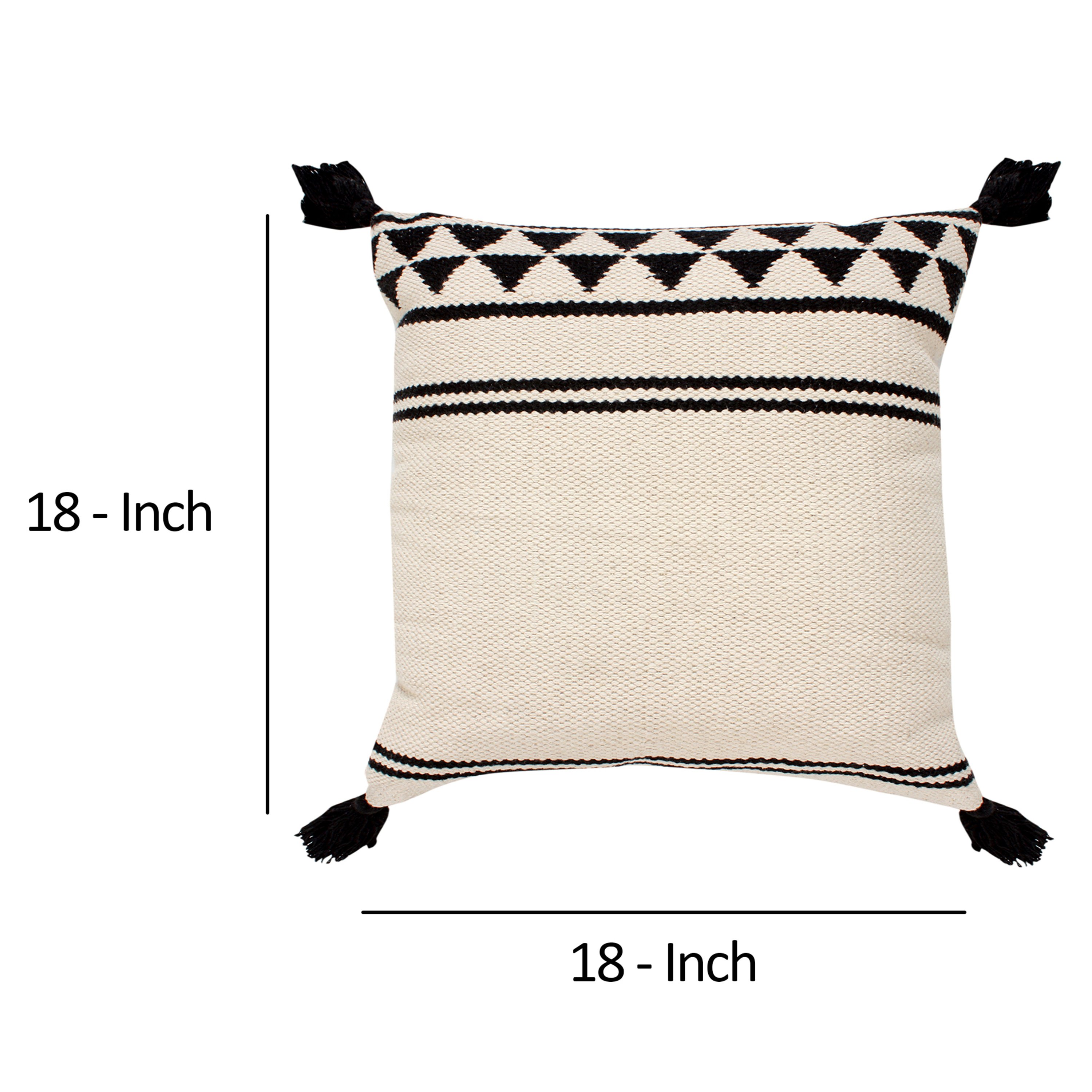 18 x 18 Square Cotton Accent Throw Pillow with Simple Striped Pattern and Tassels, Set of 2, White and Black