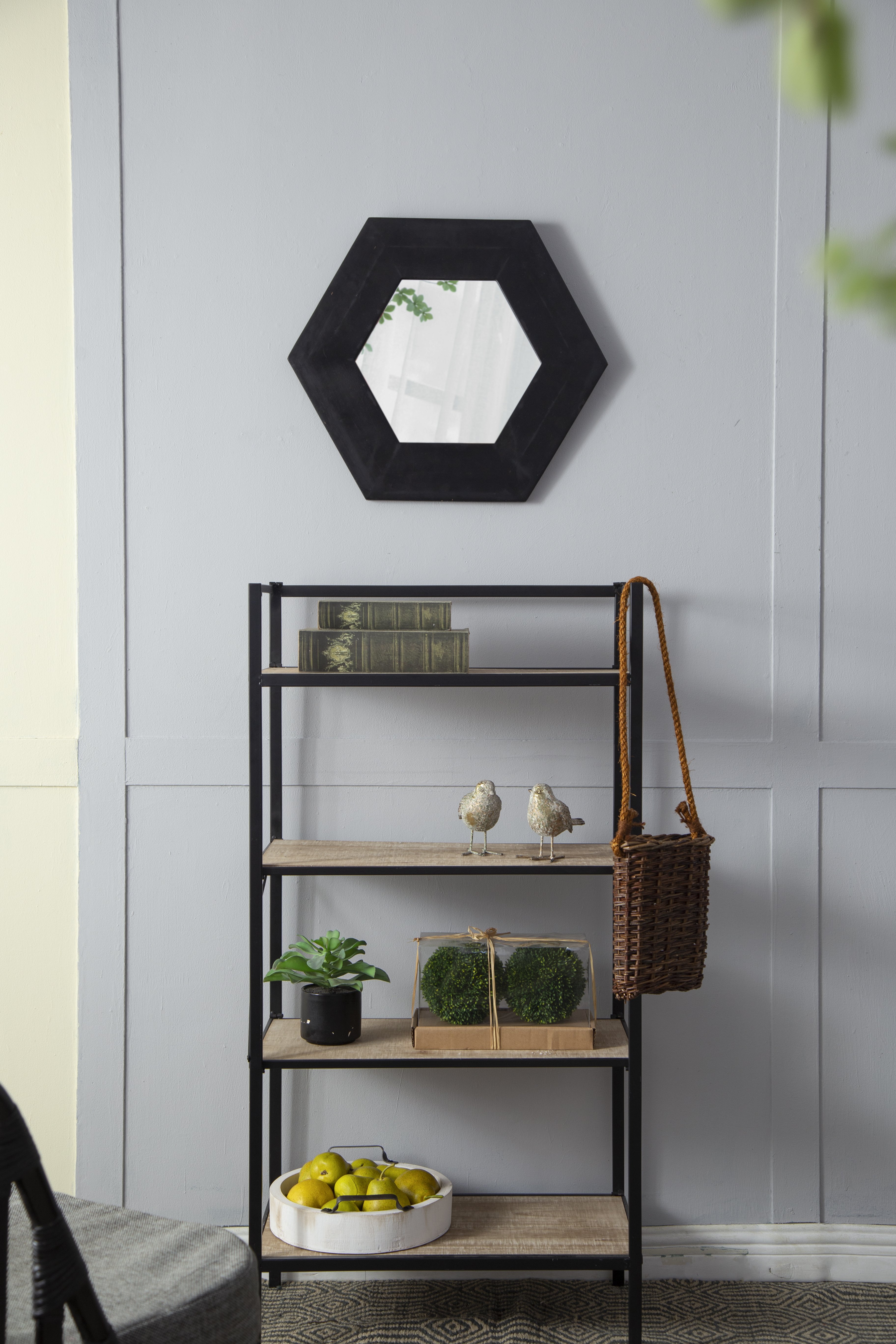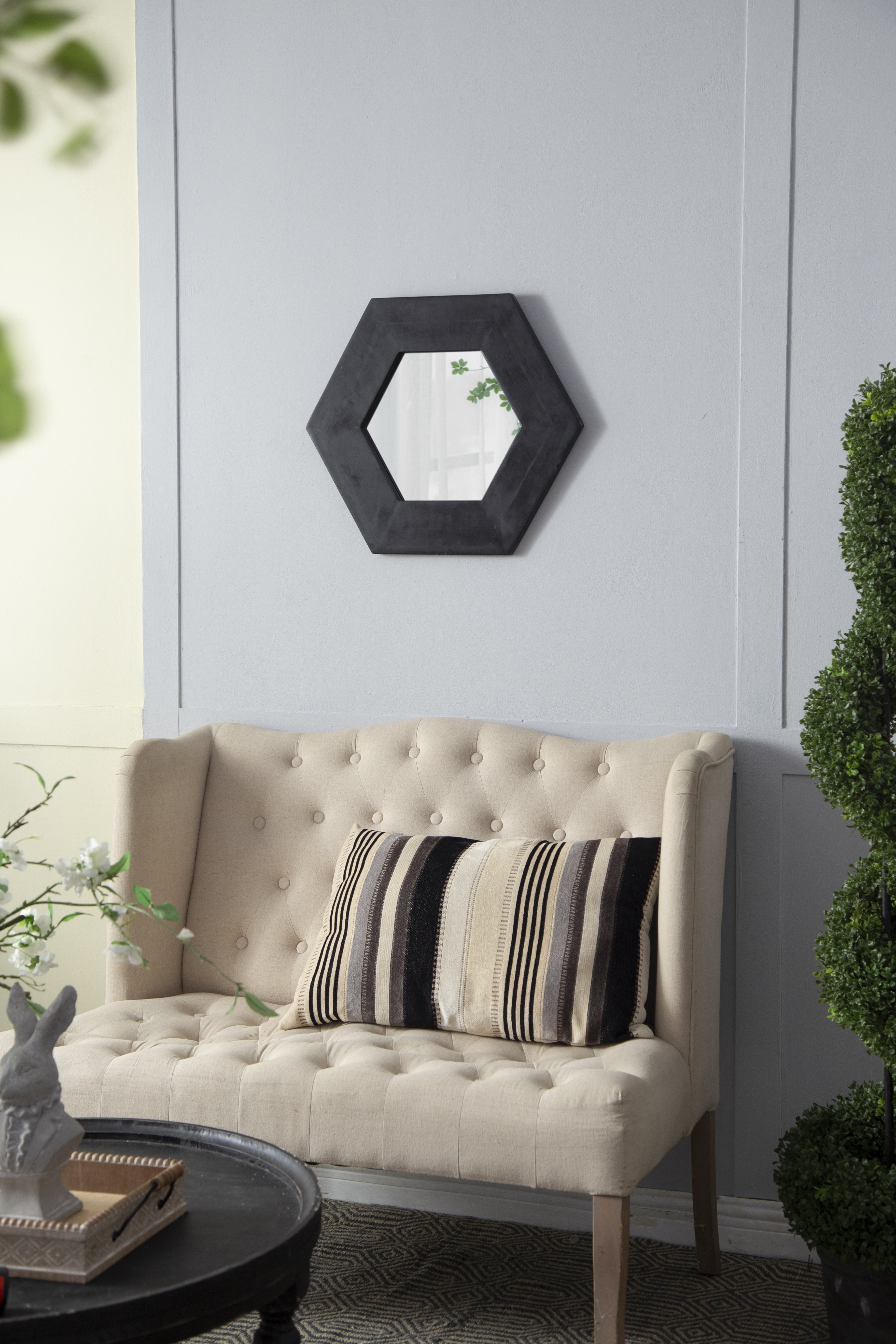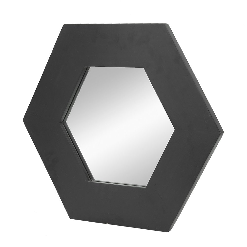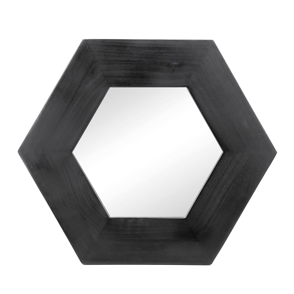 Description:The DesignAdd a glimmer of light with our Cameron Teak Wood Wall Mirror. This 18.5″ mirror is framed inside of a hexagon frame black toned teak wood. Fitting into a transitional decor style, the slightly smaller frame size of the mirror make the perfect accent to a gallery wall or add height to a floating shelf. Opening up a smaller room, watch as the light reflects off of the mirror, into the room.