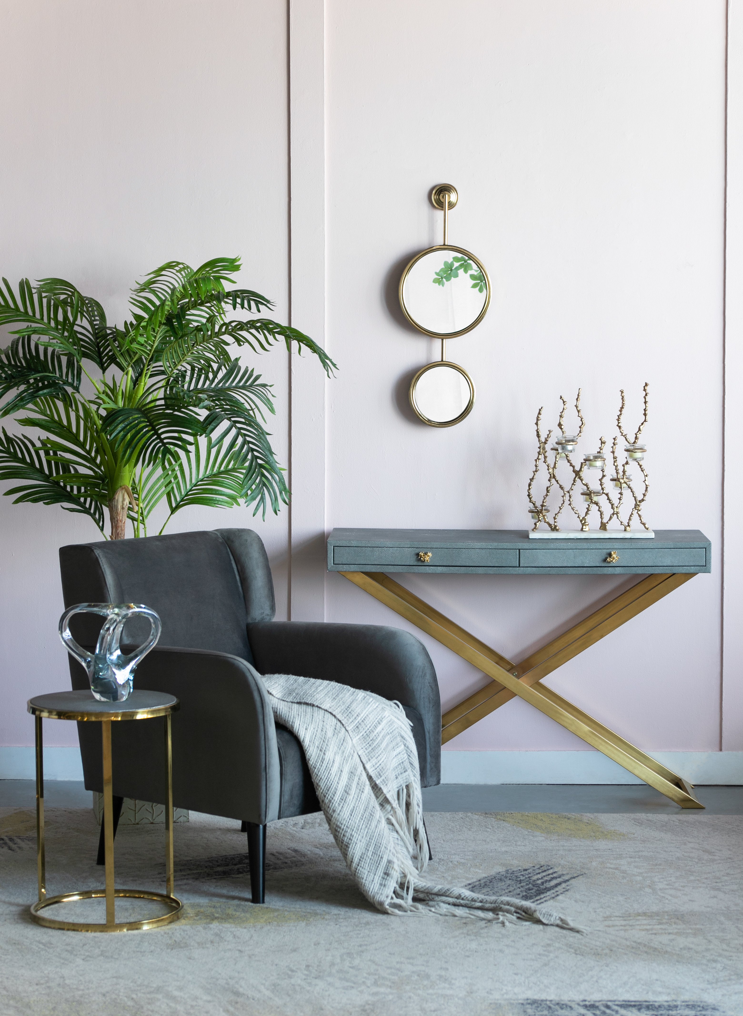 Description:The DesignAdorn your wall with this elegant Gold Iron Mirror featuring delicate,lustrous frames encircling two round mirrors.With its graceful simplicity and sleek curves,this beautiful piece offers the ideal way to dress up any space with a modern touch.This mirror fits perfectly in a chic entryway,sophisticated office,or airy living room where it adds unparalleled refinement and style.
