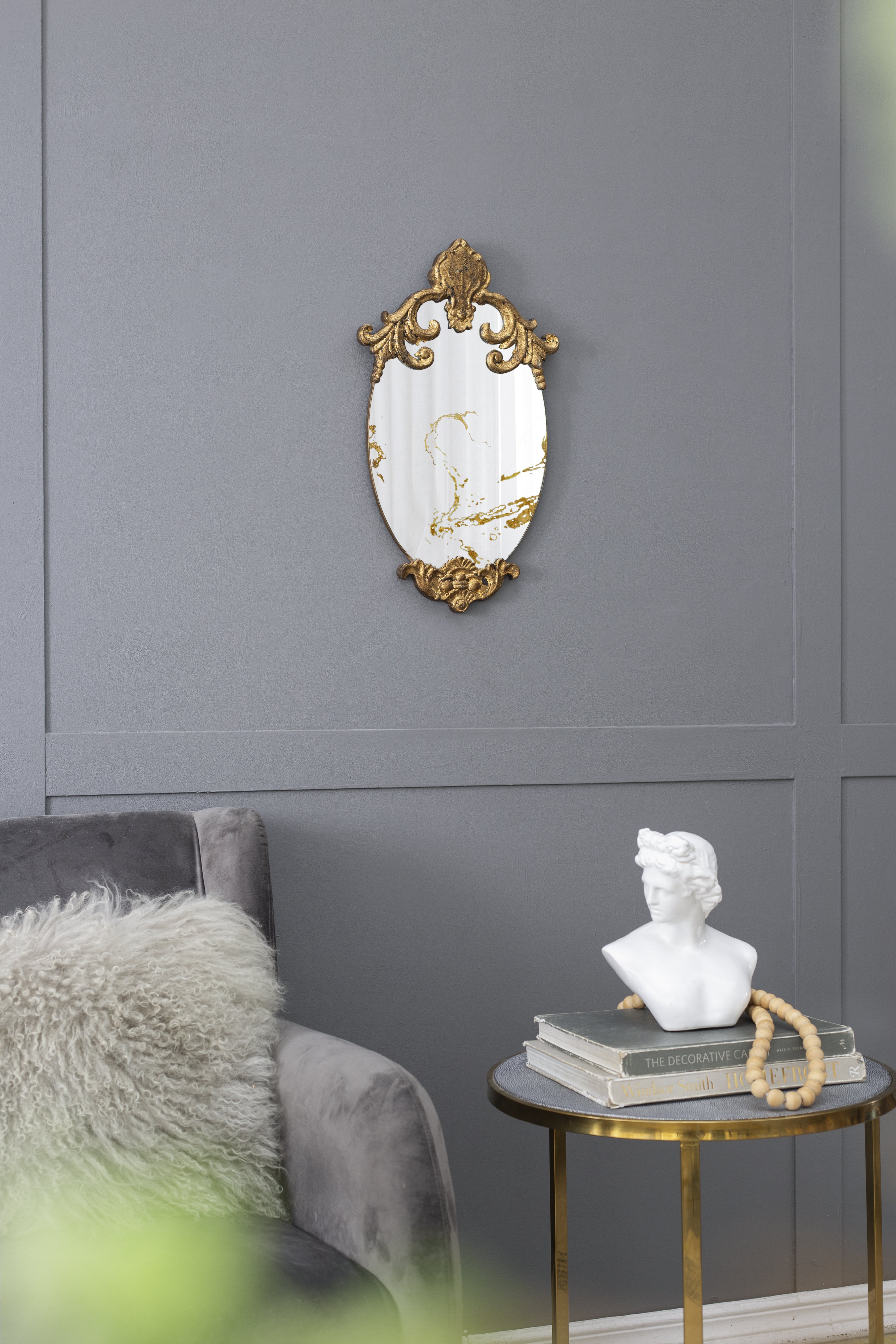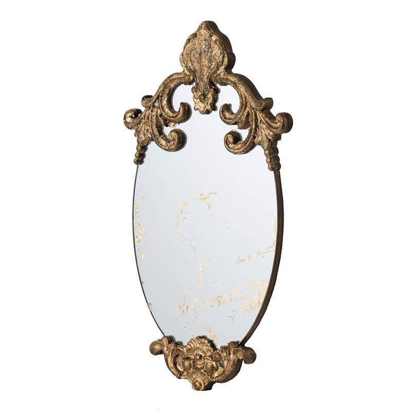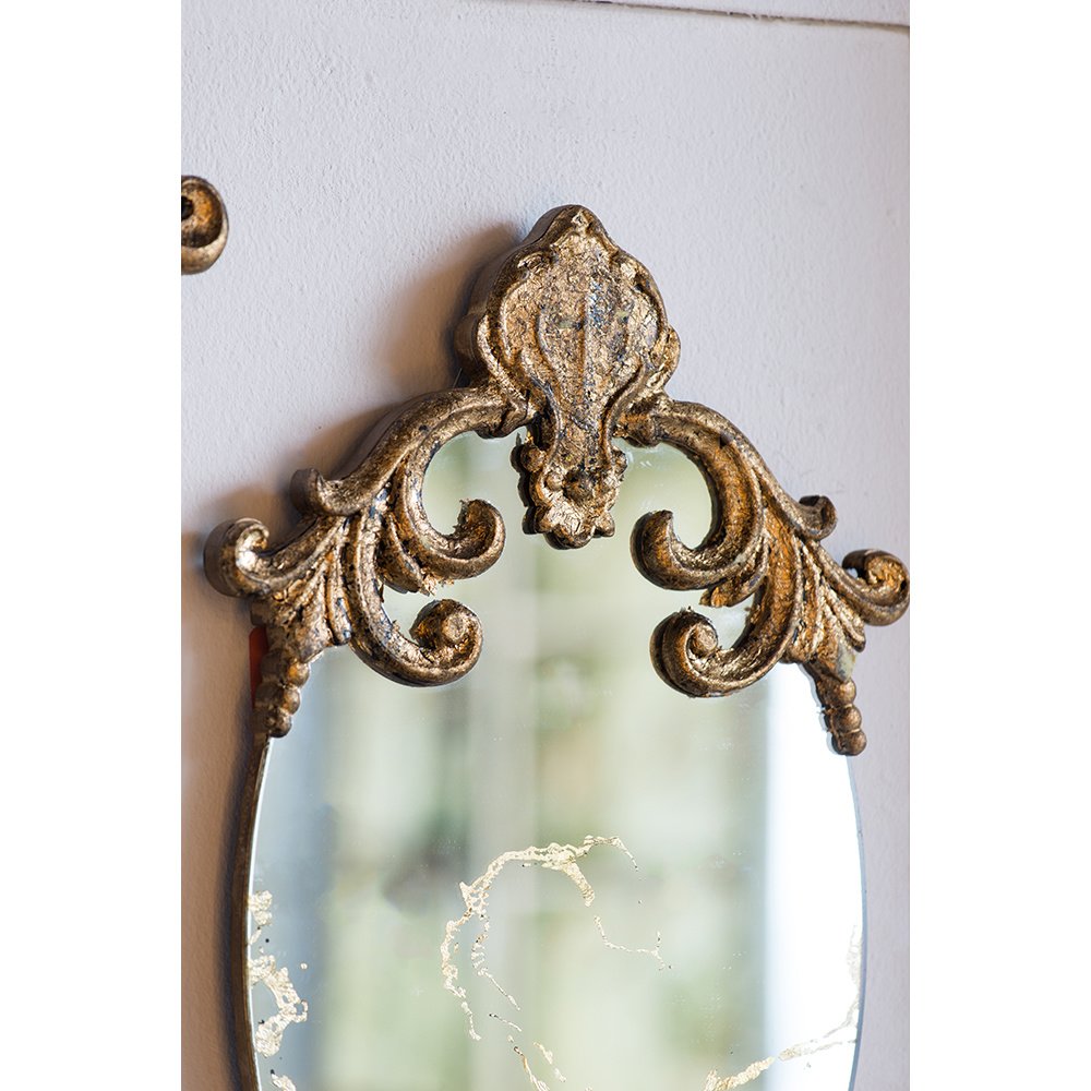 Description:The DesignWith its oval silhouette, antique gold colorway, and alluring scrollwork design, this decorative accent mirror is sure to embellish your home decor. The resin frame allows for such rich details to be possible,while the MDF backing infuses this piece with a durable yet lightweight touch.Measuring 20.5H x 12W,this mirror is the perfect size to add a layer of regal whimsy to any room in your home.