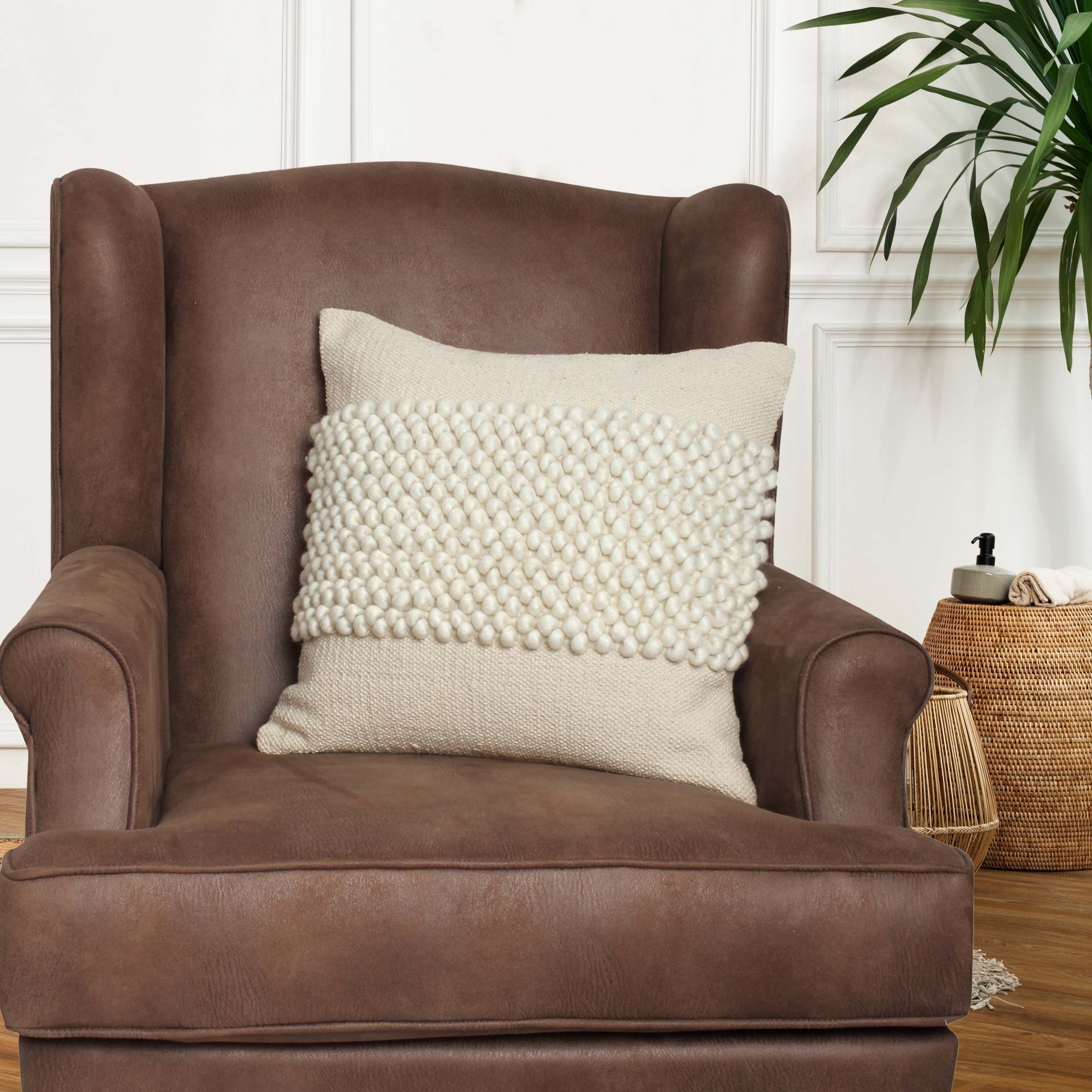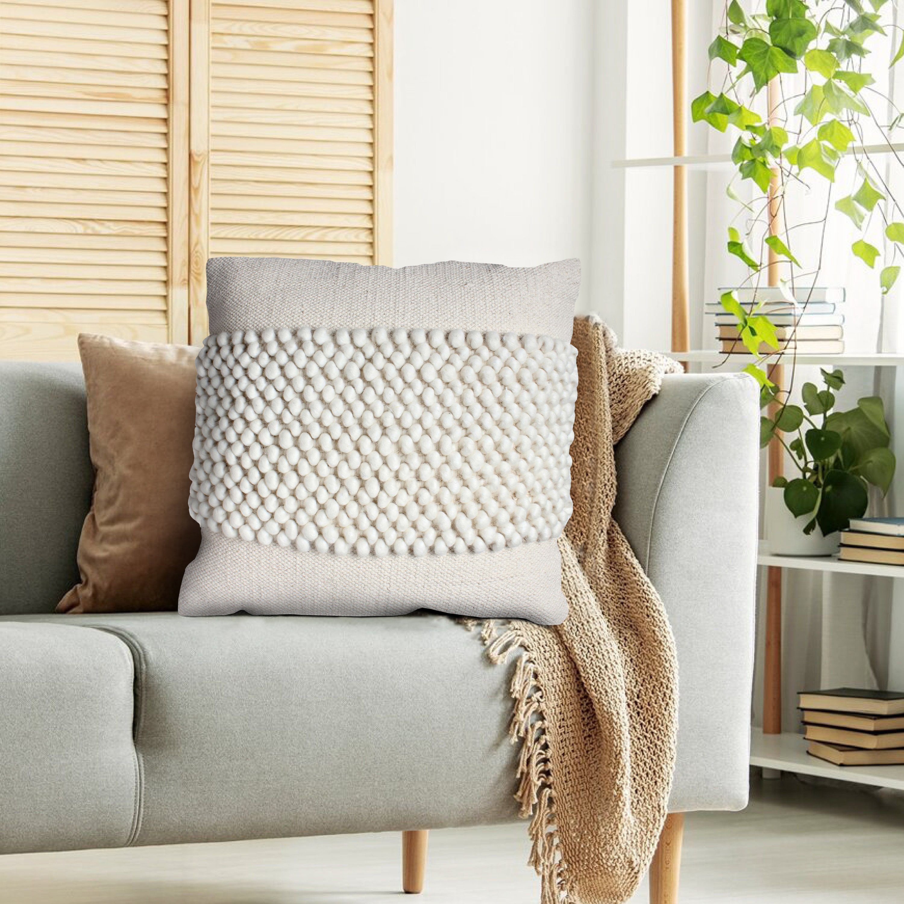 20 x 20 Square Cotton Accent Throw Pillow, Textured Dotted Fabric Details, White