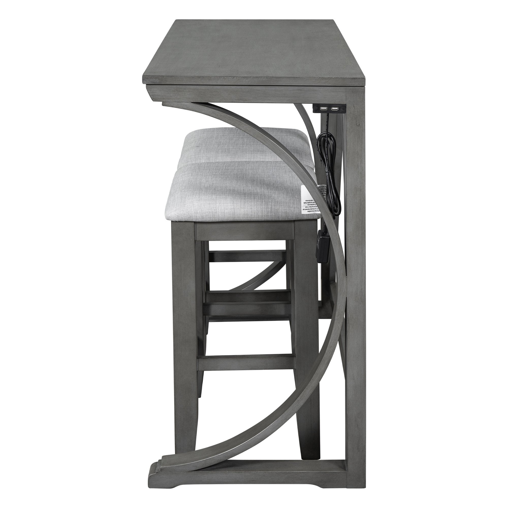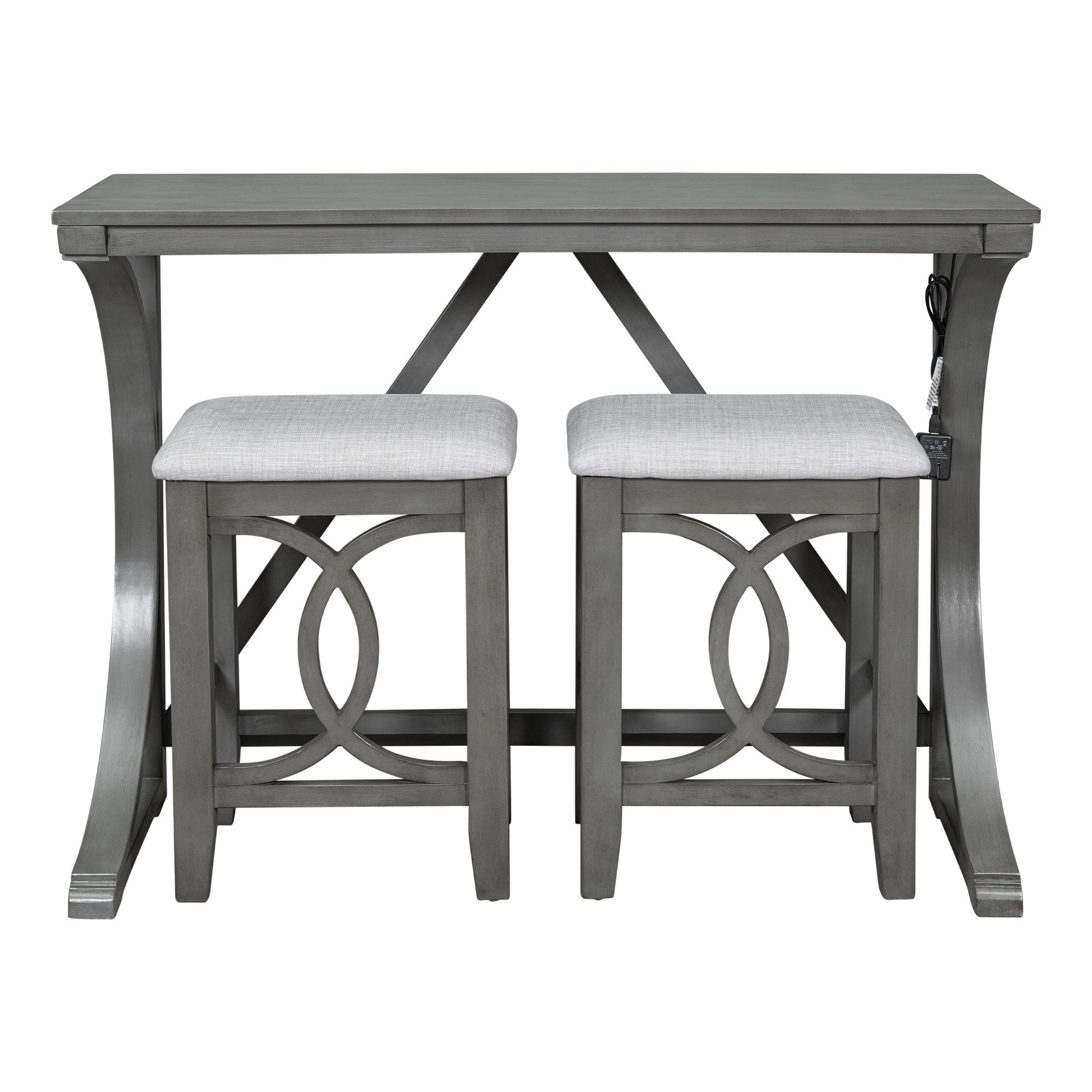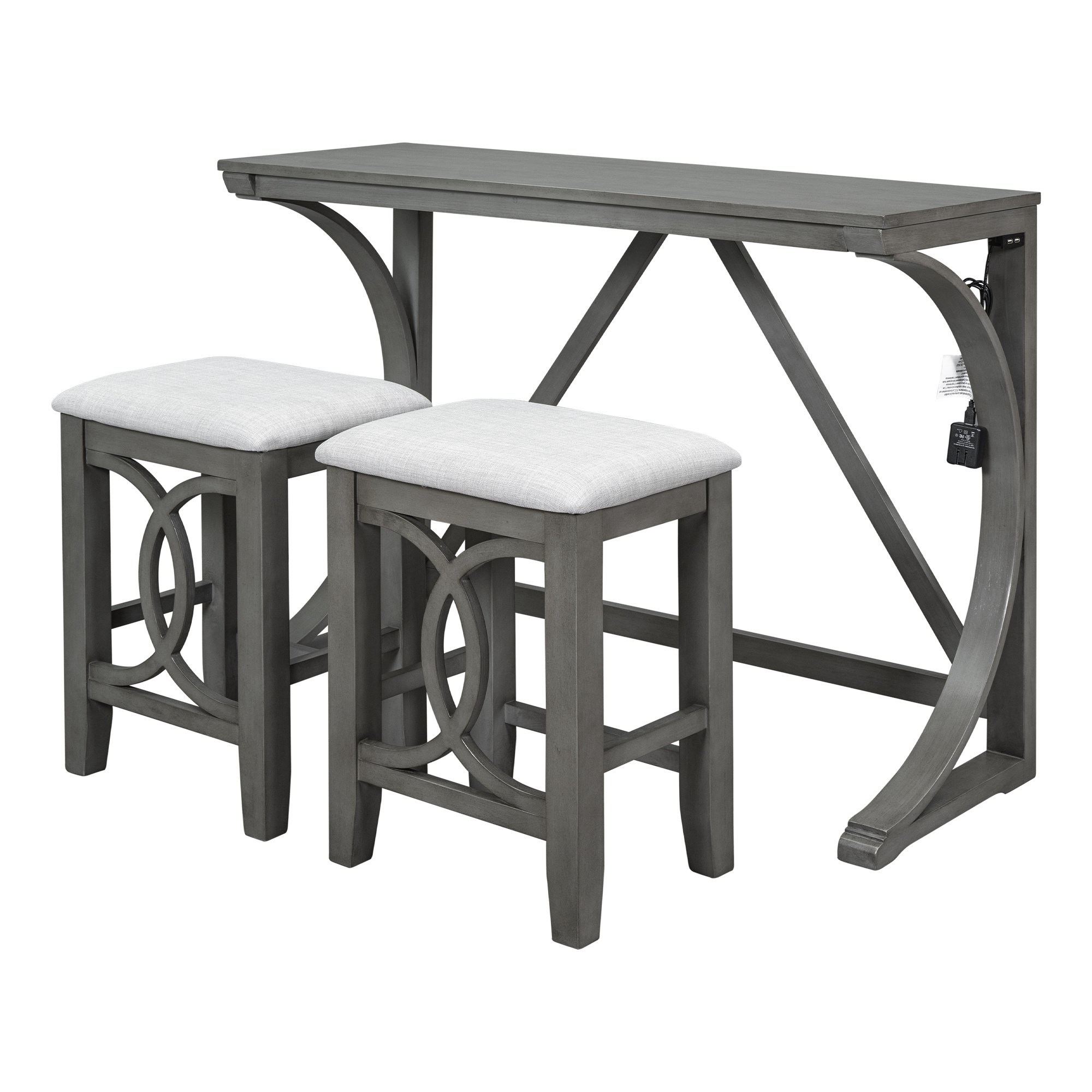 3-Piece Counter Height Dining Table Set with USB Port and Upholstered Stools