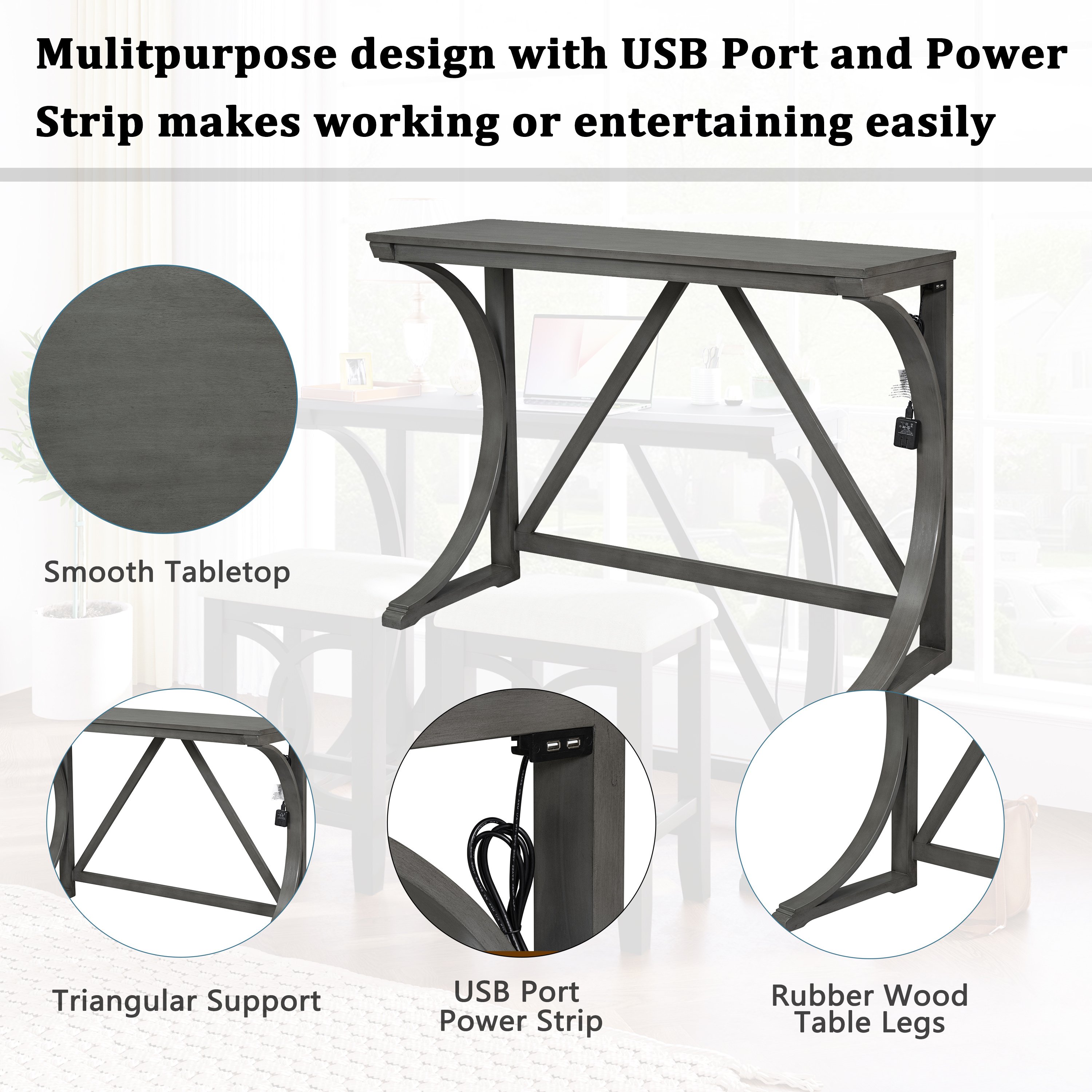2.Creative built-in USB design makes charge your phone or set up your favorite electronic appliances possible. Thanks to the USB ports, this counter height set allows to keep your devices charged when working or playing.