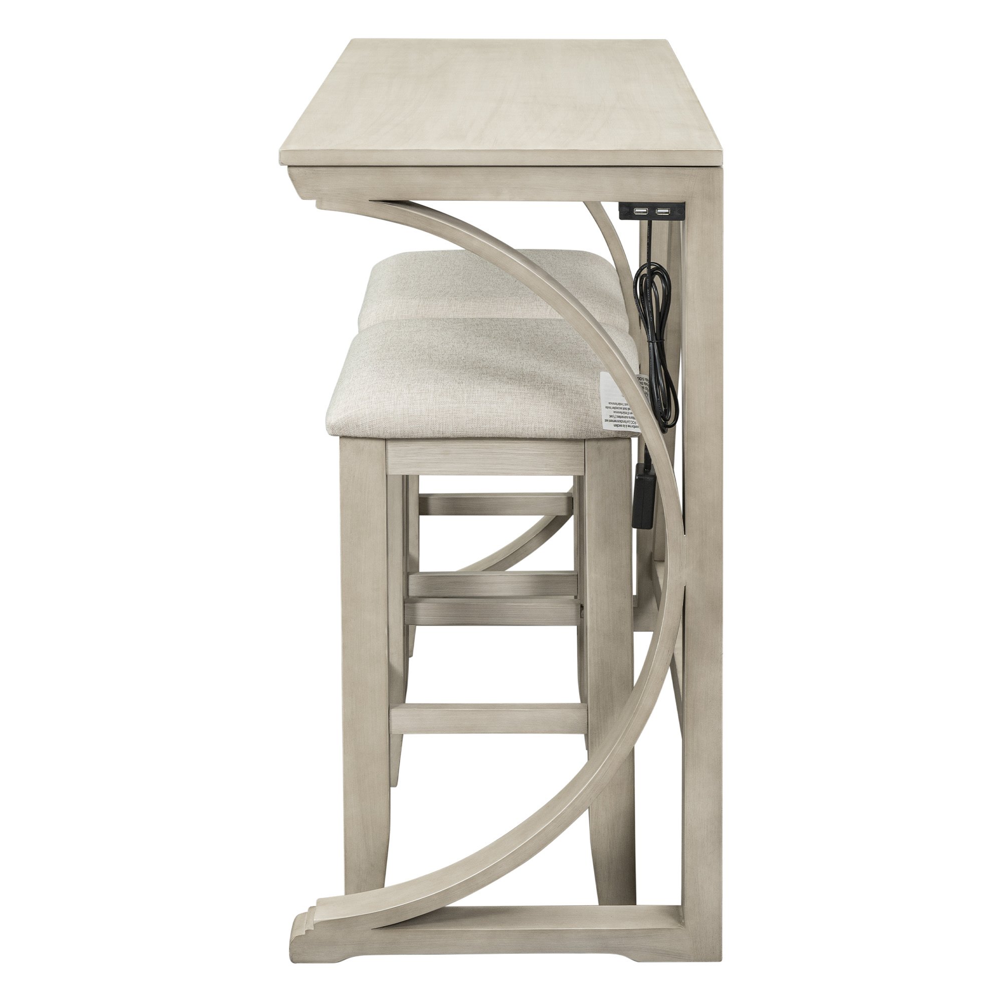 3-Piece Counter Height Dining Table Set with USB Port and Upholstered Stools