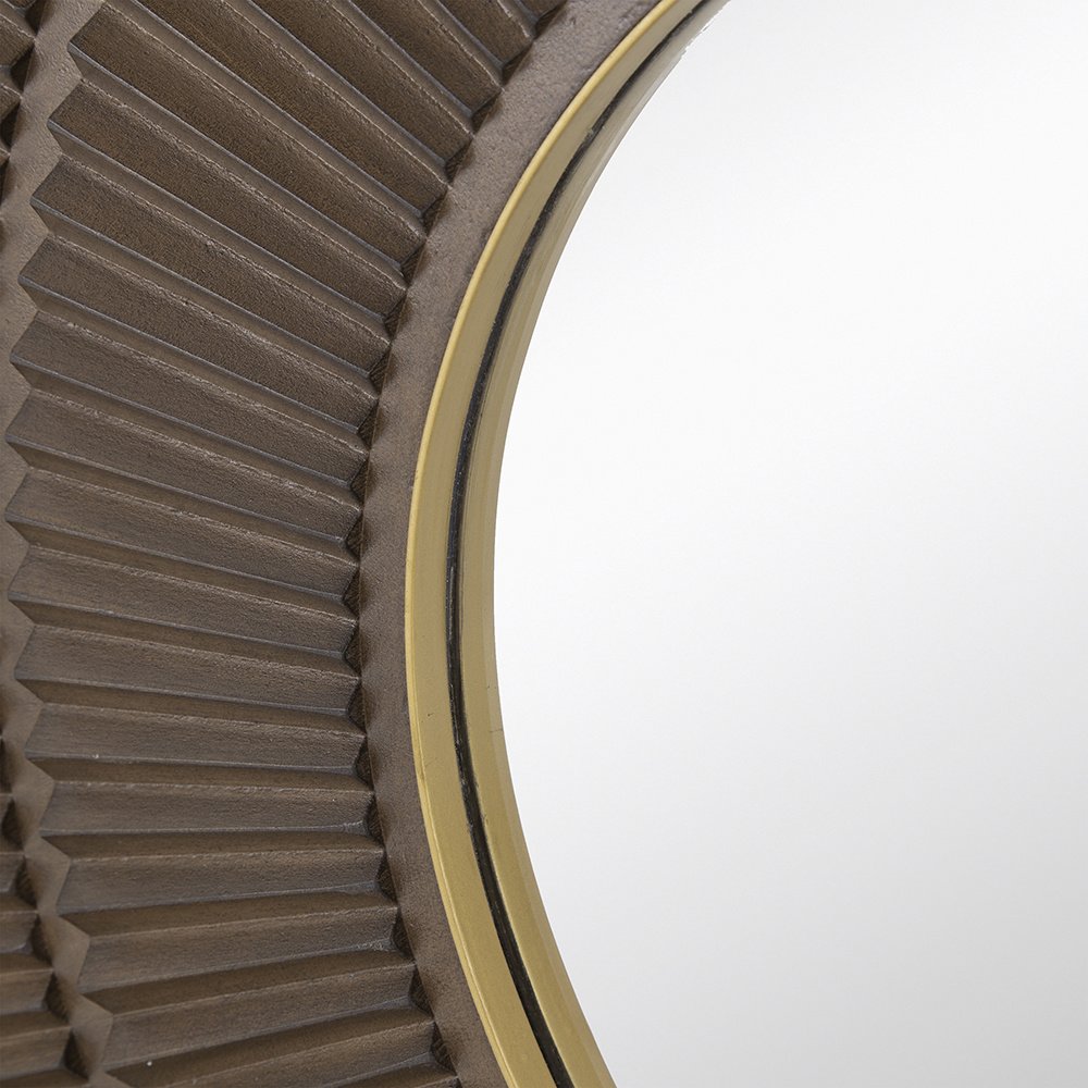 31.5x1x31.5" Round Carter Wooden Mirror with Gold Iron Frame Neutral Colorway Wall Decor for Live space, Bathroom, Entryway Wall Decor