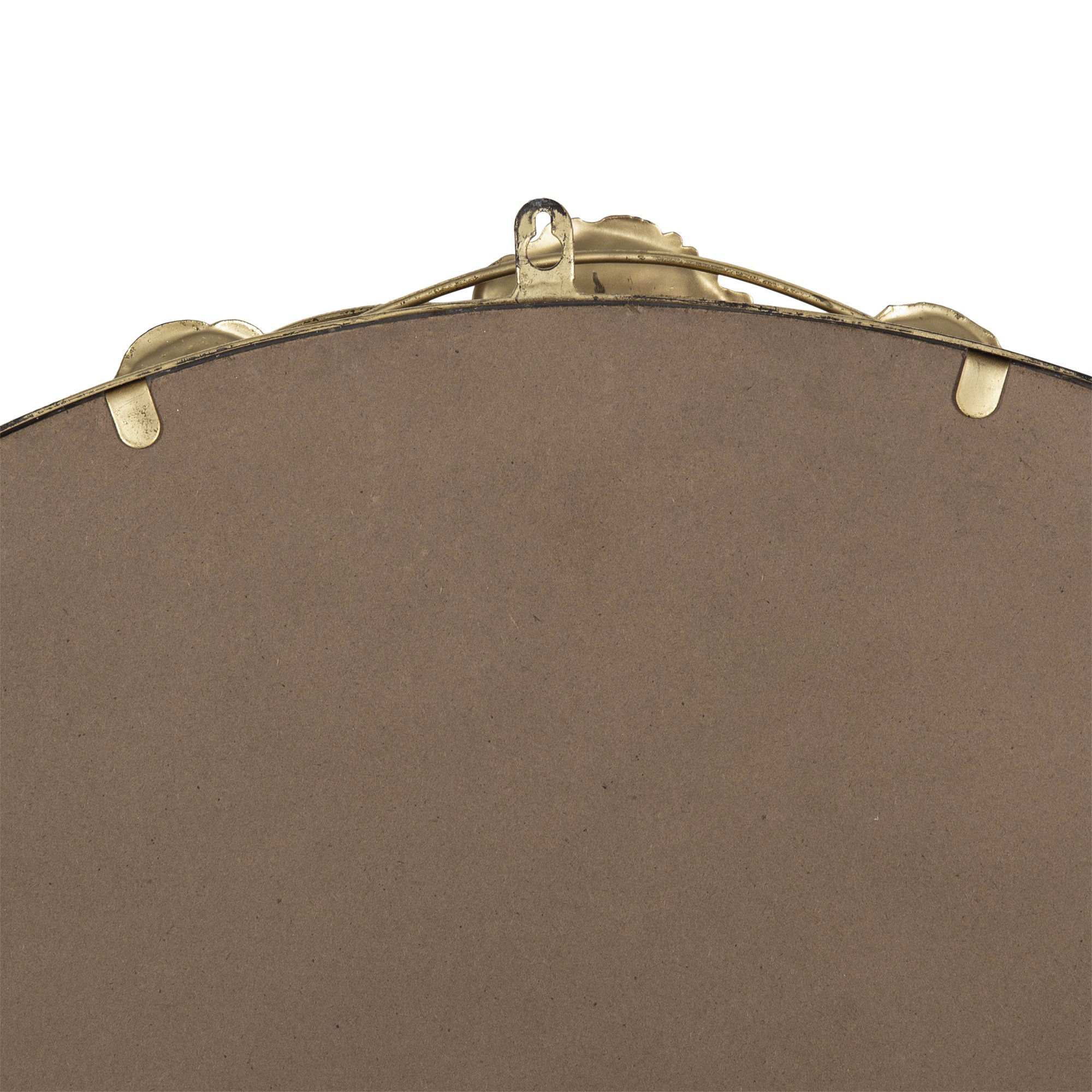 Description:The DesignRevitalizing the traditional round accent mirror, this piece proudly boasts a ring of whimsical gold leaves to create a striking modern focal point for any room in your home. Crafted from solid iron and eco-friendly MDF wood, this mirror is provided with durable protection and stability. Measurements: 35H x 35W x 3D.