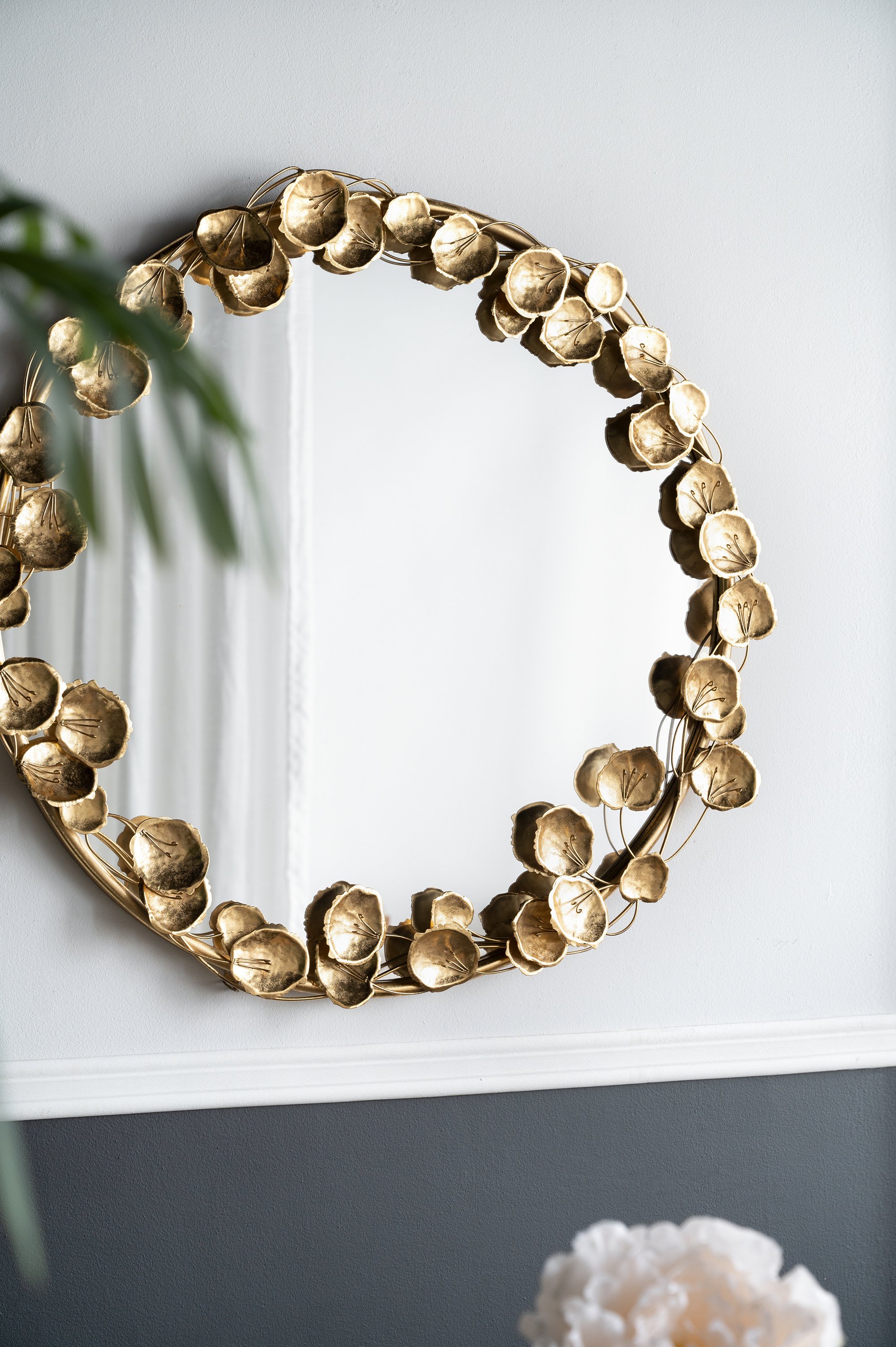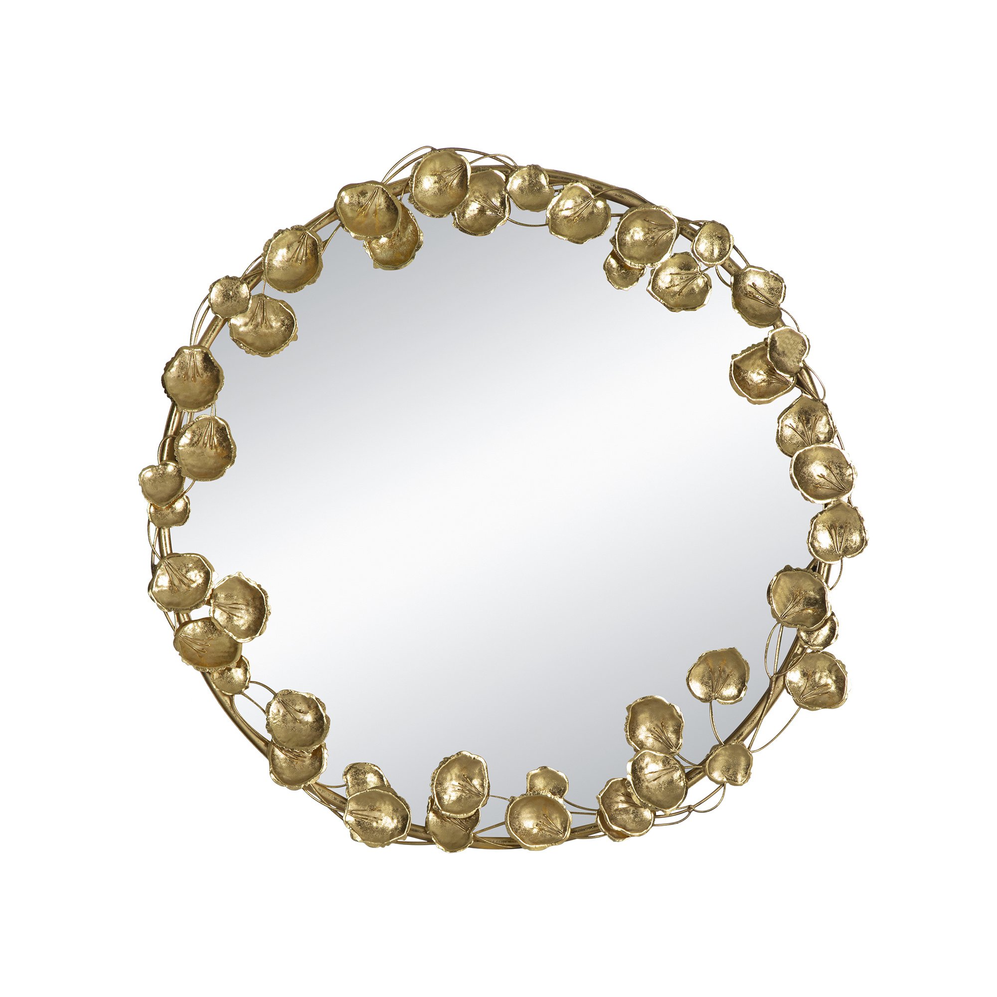 Breathing new life into the traditional round mirror, this piece boasts a whimsical collection of gold leaf accents that combine to create a striking yet playful conversation piece.