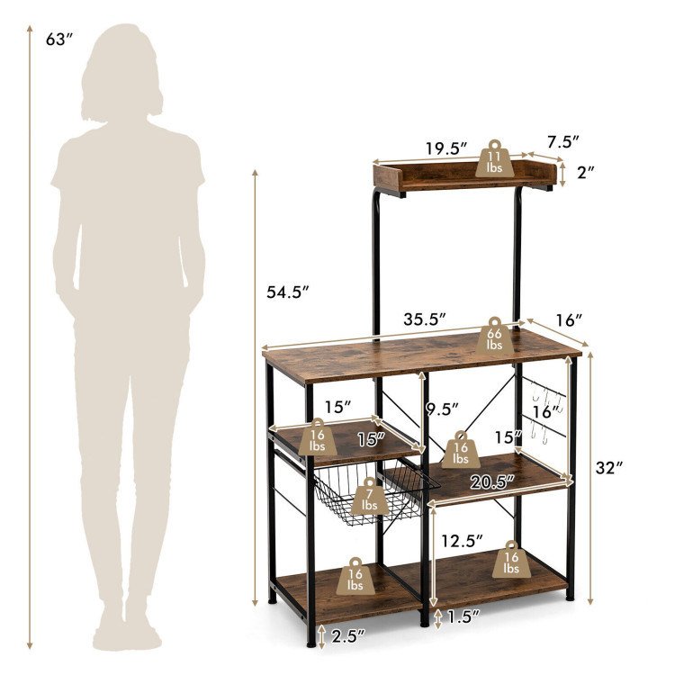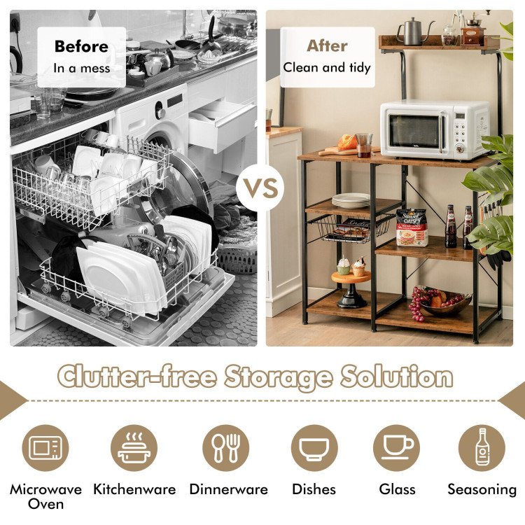 4-tier Kitchen Baker's Rack with Basket and 5 Hooks