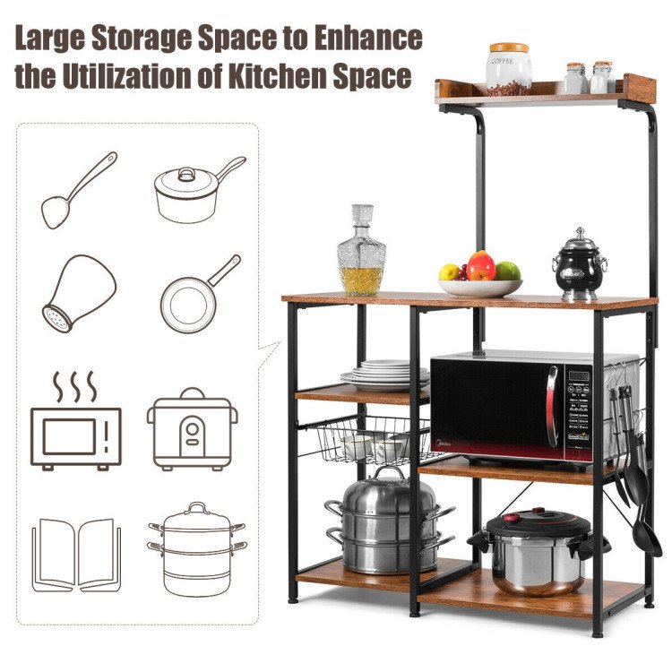 4-tier Kitchen Baker's Rack with Basket and 5 Hooks