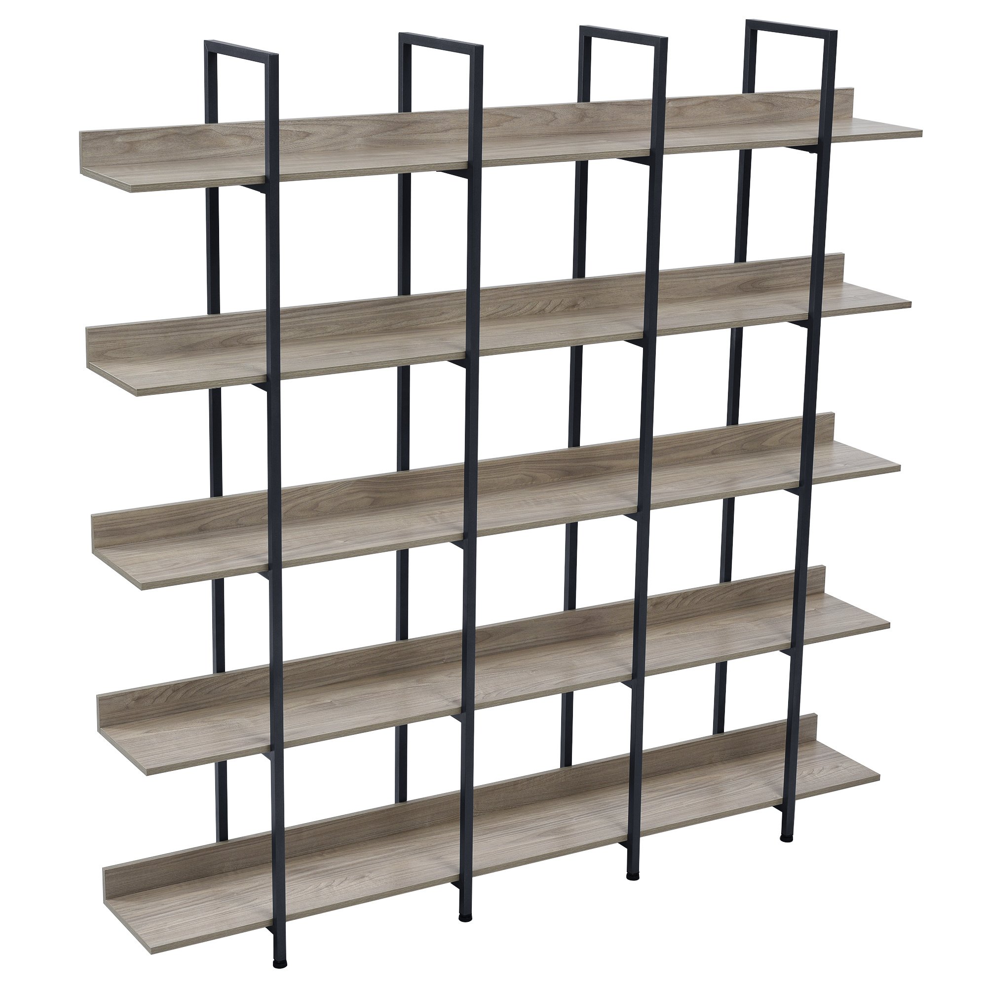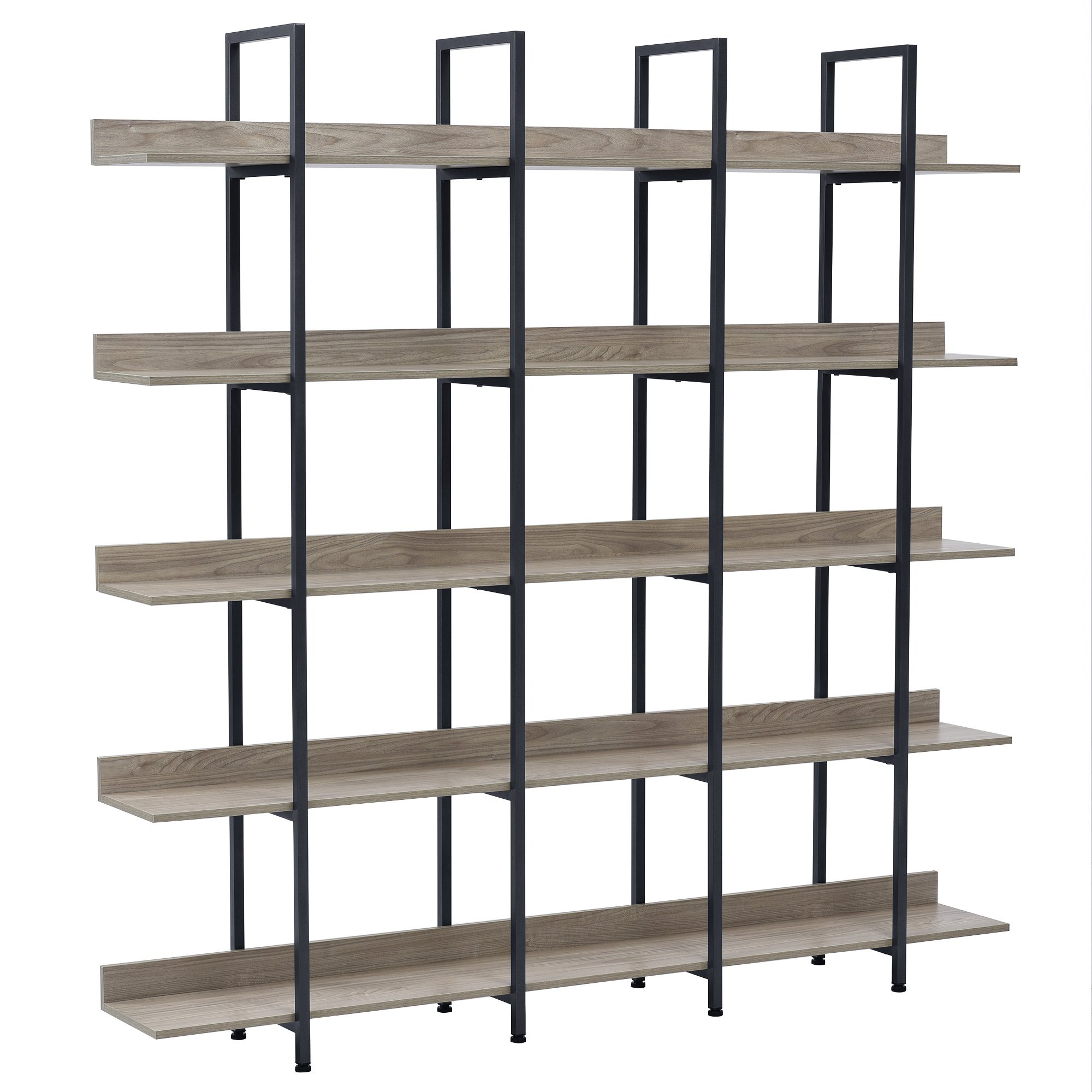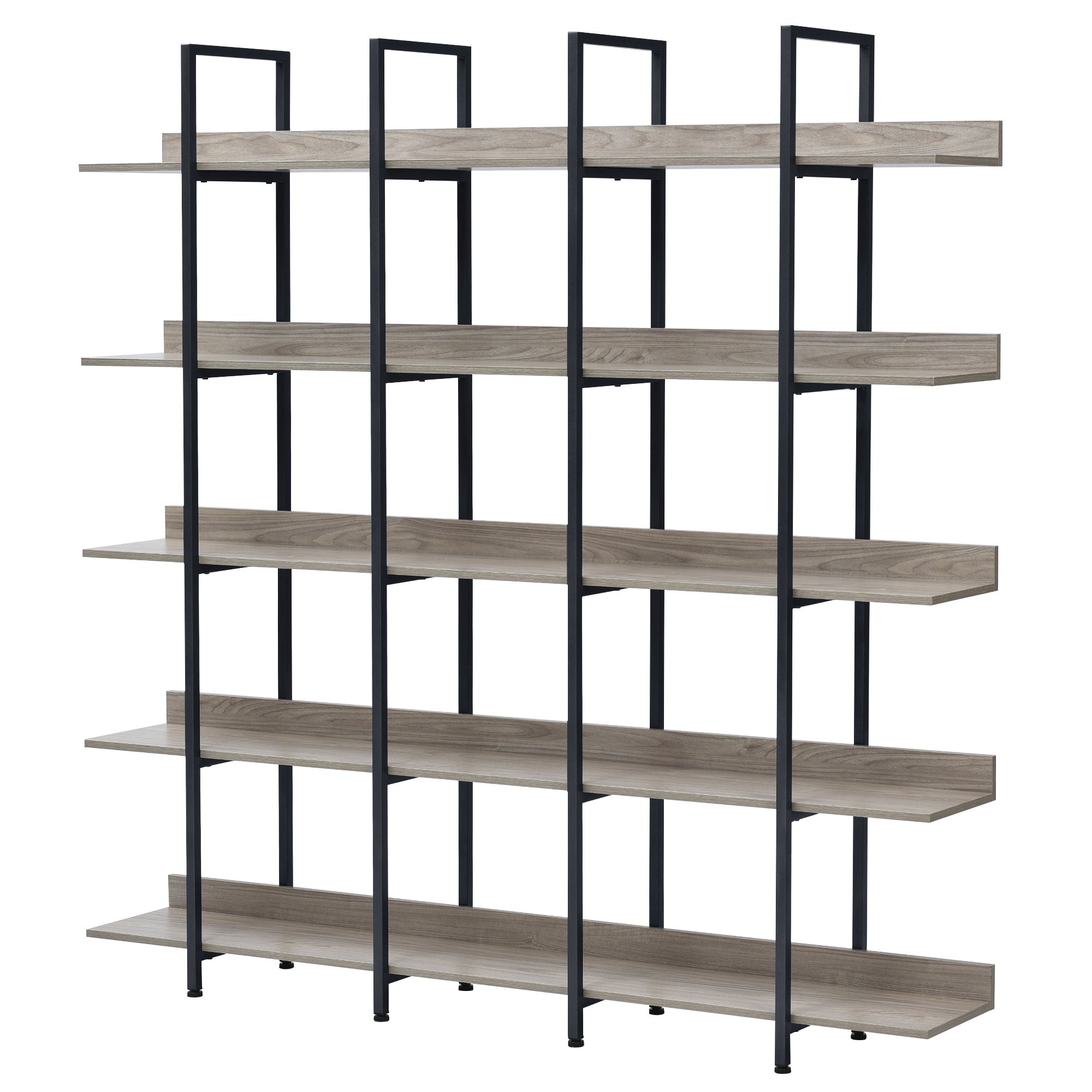5 Tier Bookcase Home Office Open Bookshelf, Vintage Industrial Style Shelf with Metal Frame, MDF Board
