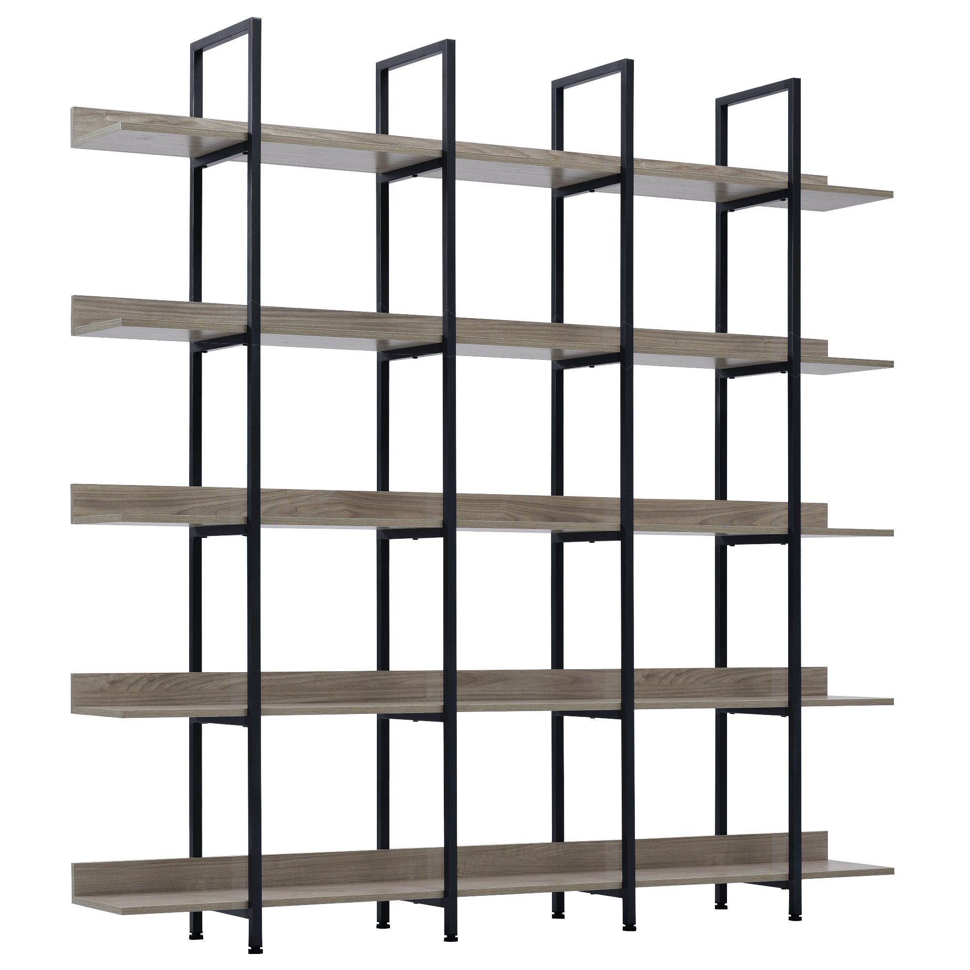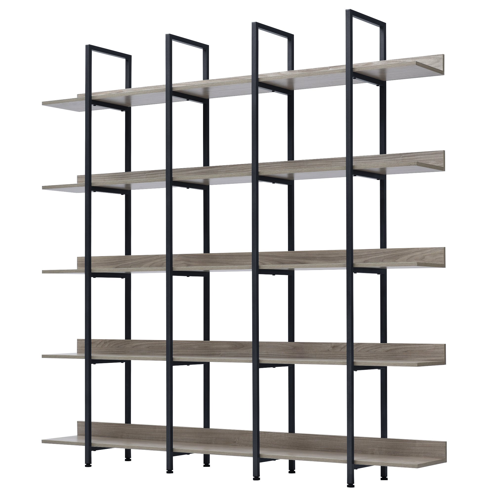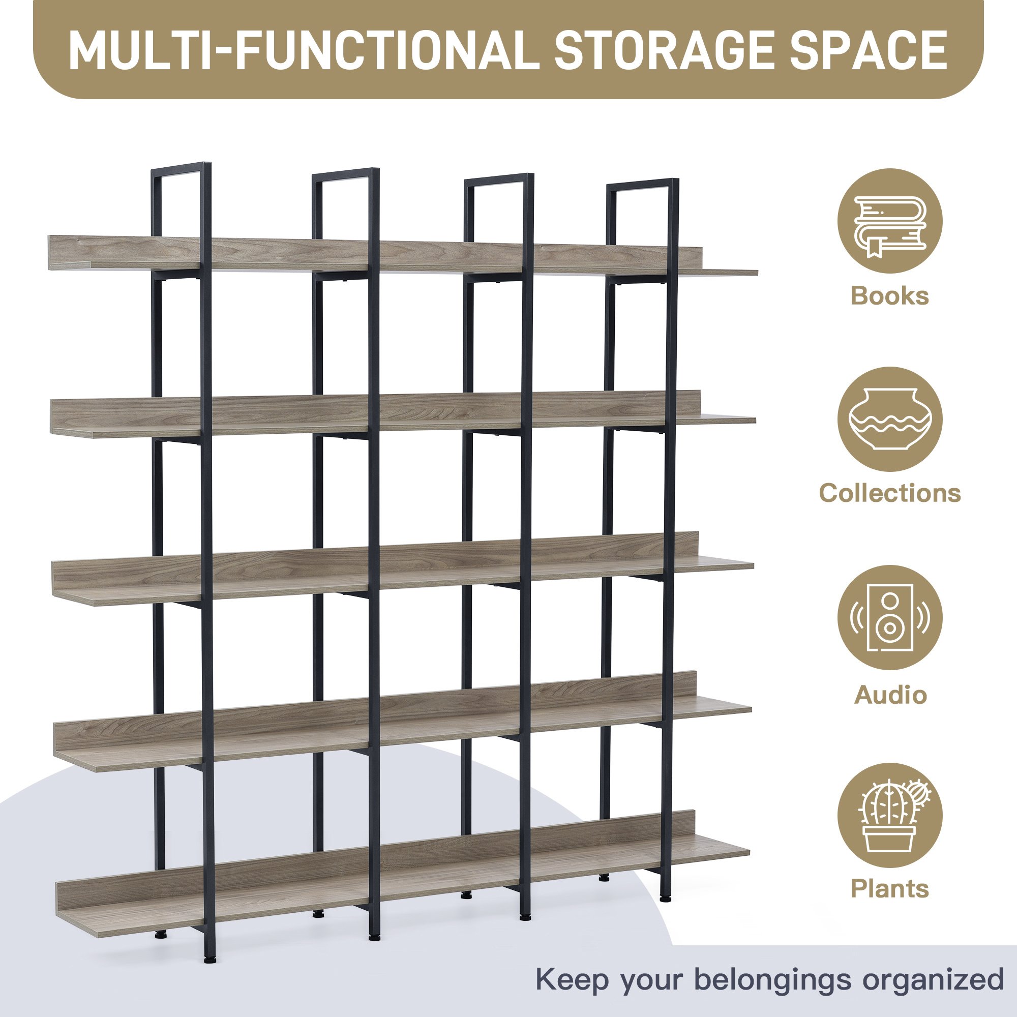 5 Tier Bookcase Home Office Open Bookshelf, Vintage Industrial Style Shelf with Metal Frame, MDF Board