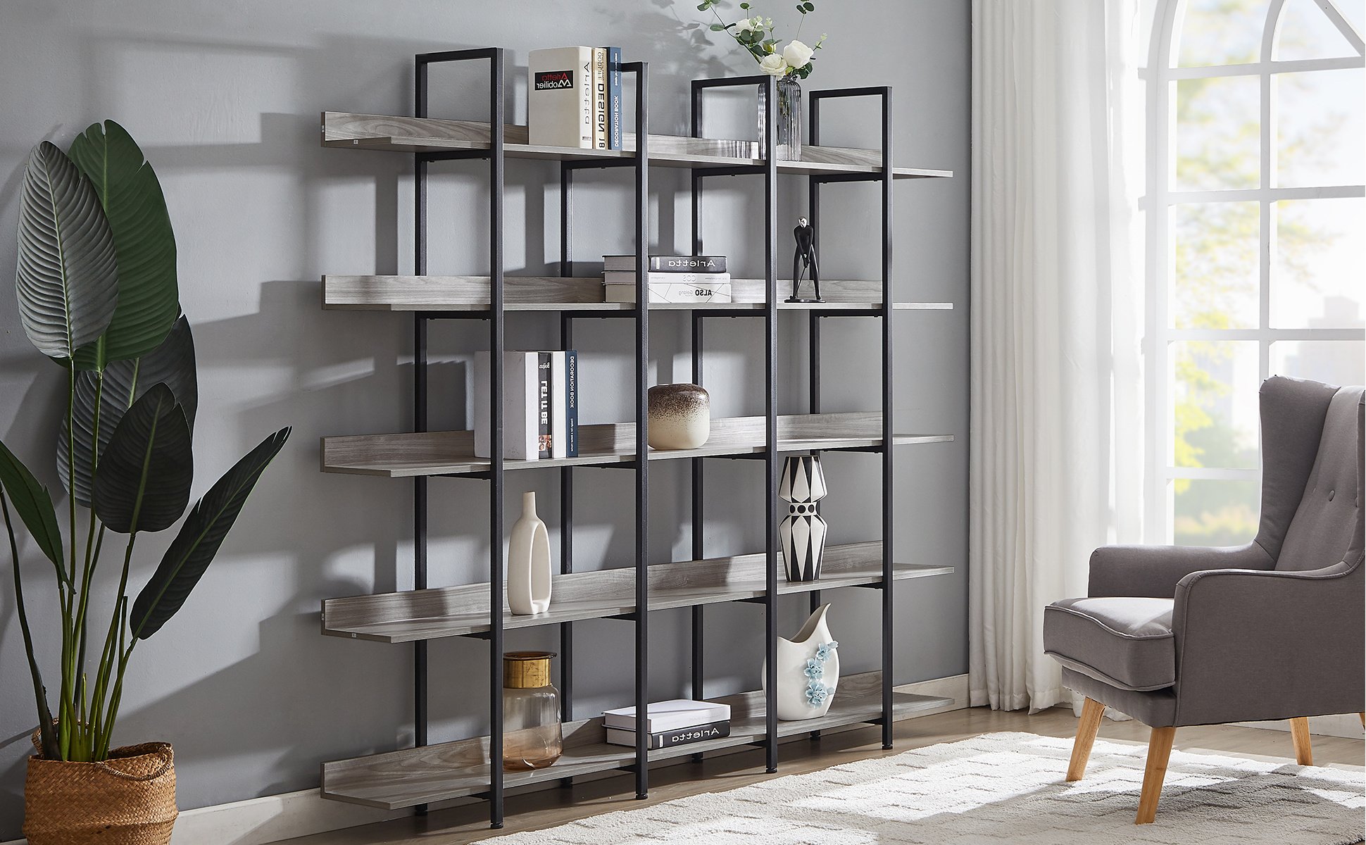 Home > 5 Tier Bookcase Home Office Open Bookshelf, Vintage Industrial Style Shelf with Metal Frame, MDF Board