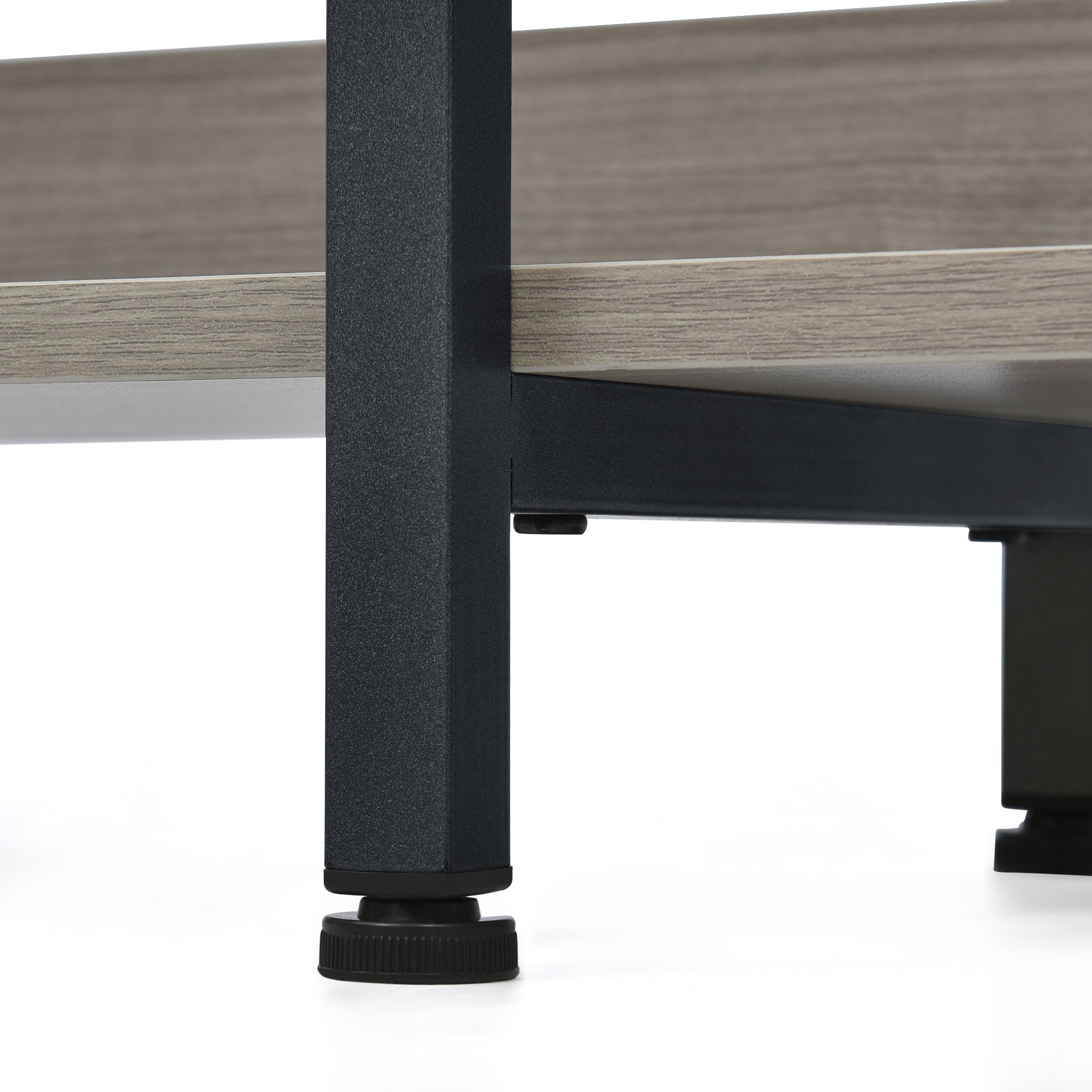 2.Constructed with MDF board and practical powder-coated steel frame, this bookshelf is sturdy and durable, whose each shelf can support up to 80lbs, bearing 400lbs in total. And the thick panel with smooth and water-proof surface makes it convenient for daily clean-up, hassle free.