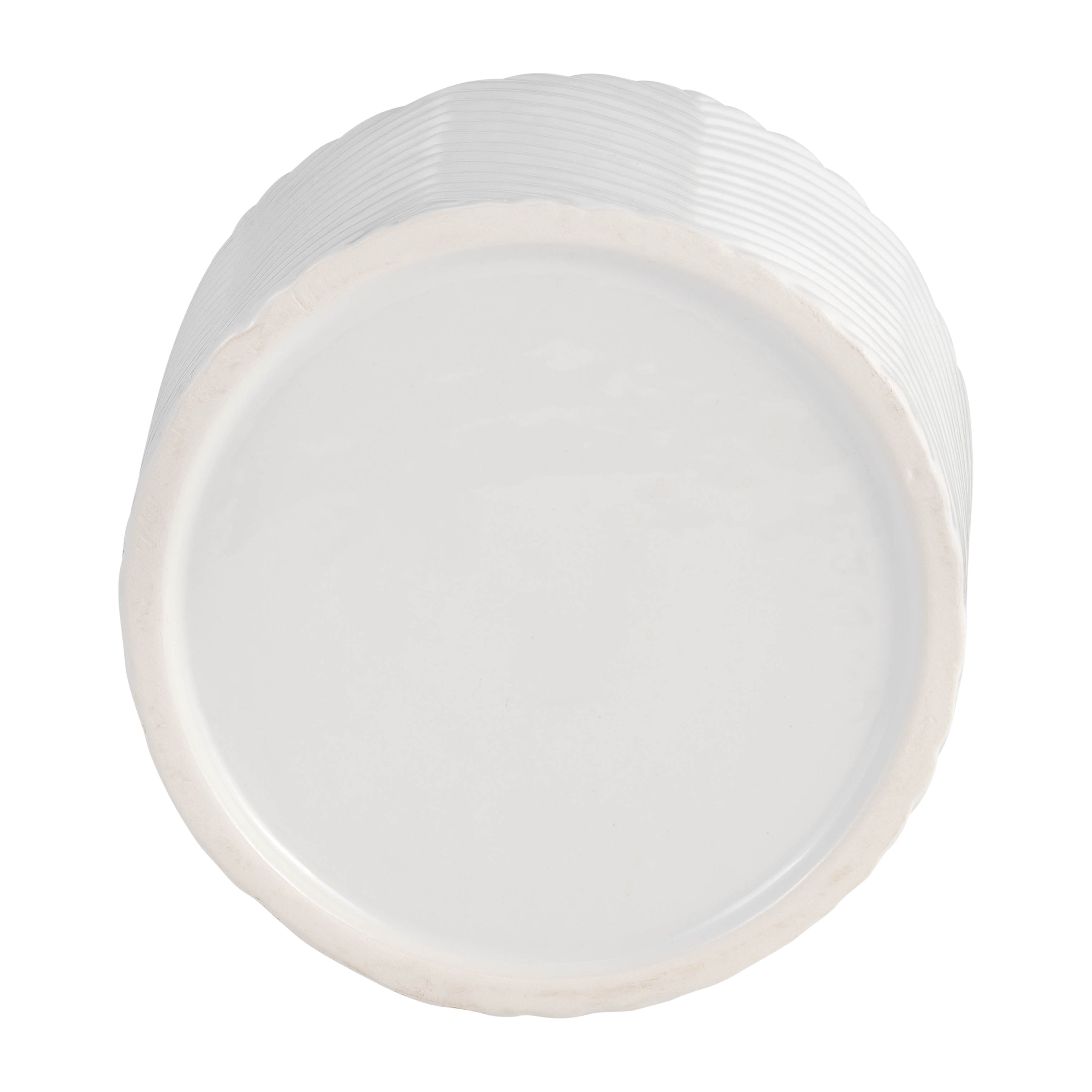 6" CERAMIC CHEVRON PLANTER W/ WOOD STAND, WHITE
