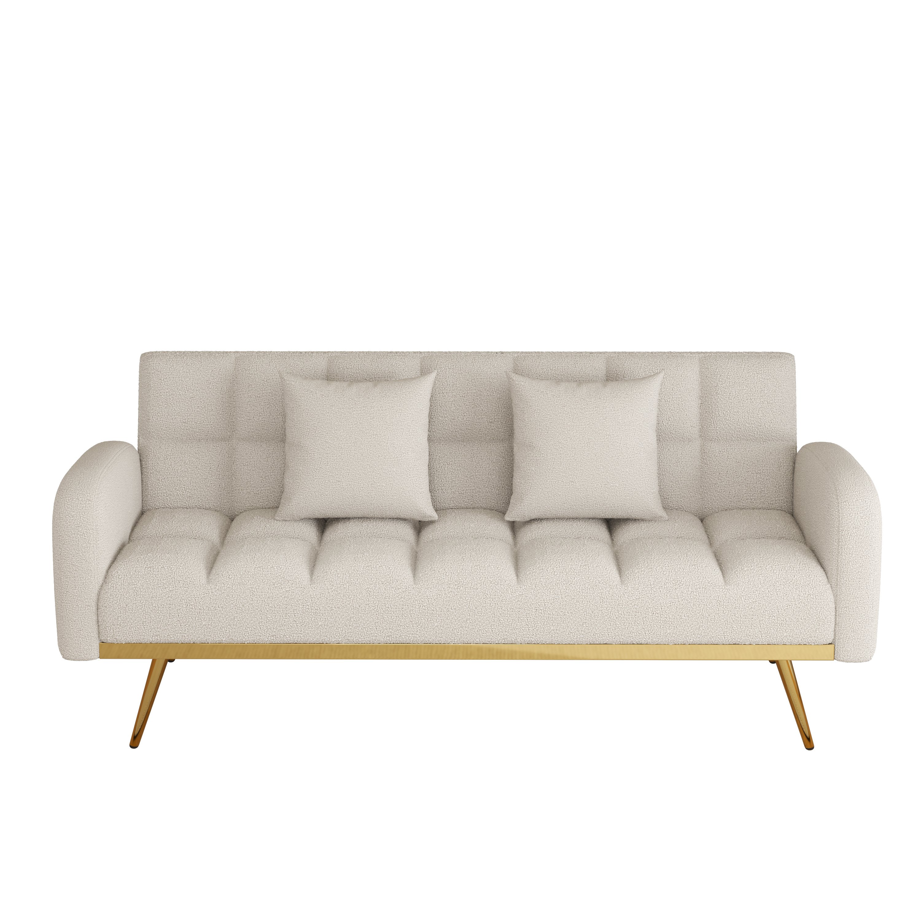 69-inch beige sofa bed with adjustable sofa teddy fleece 2 throw pillows