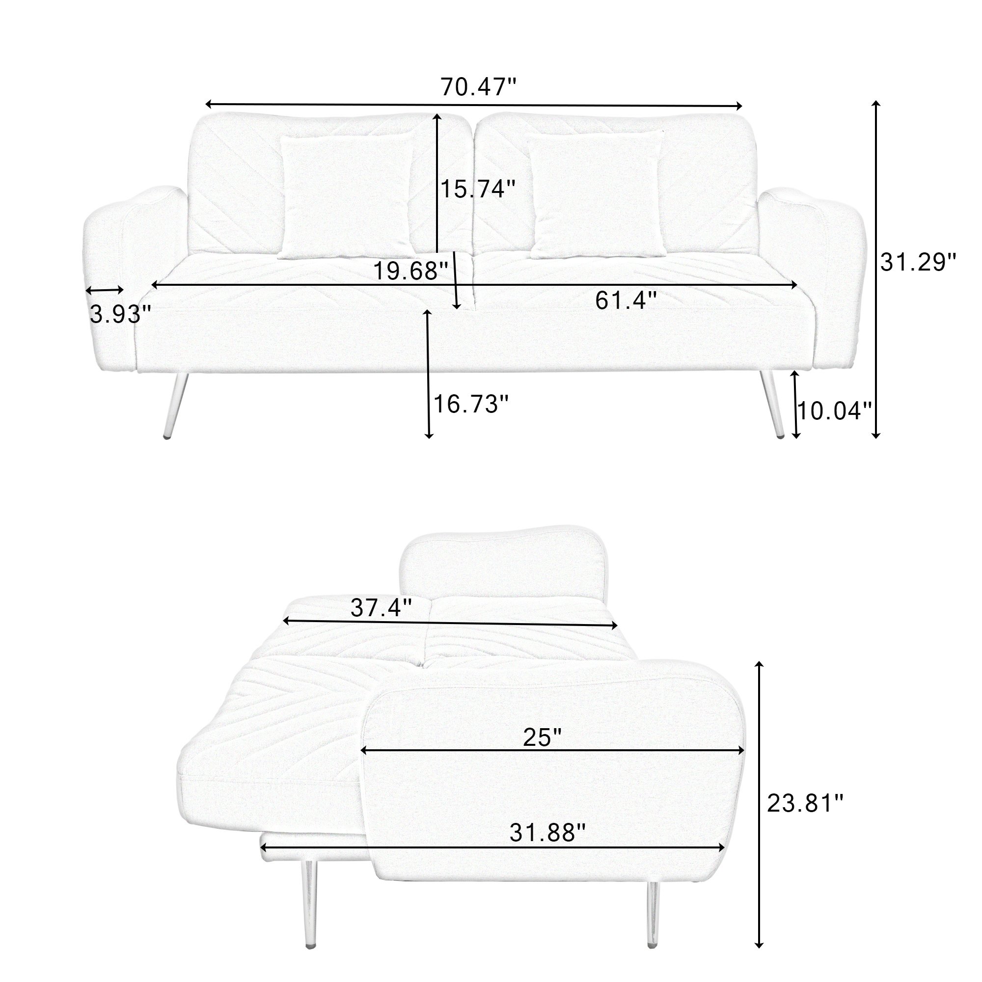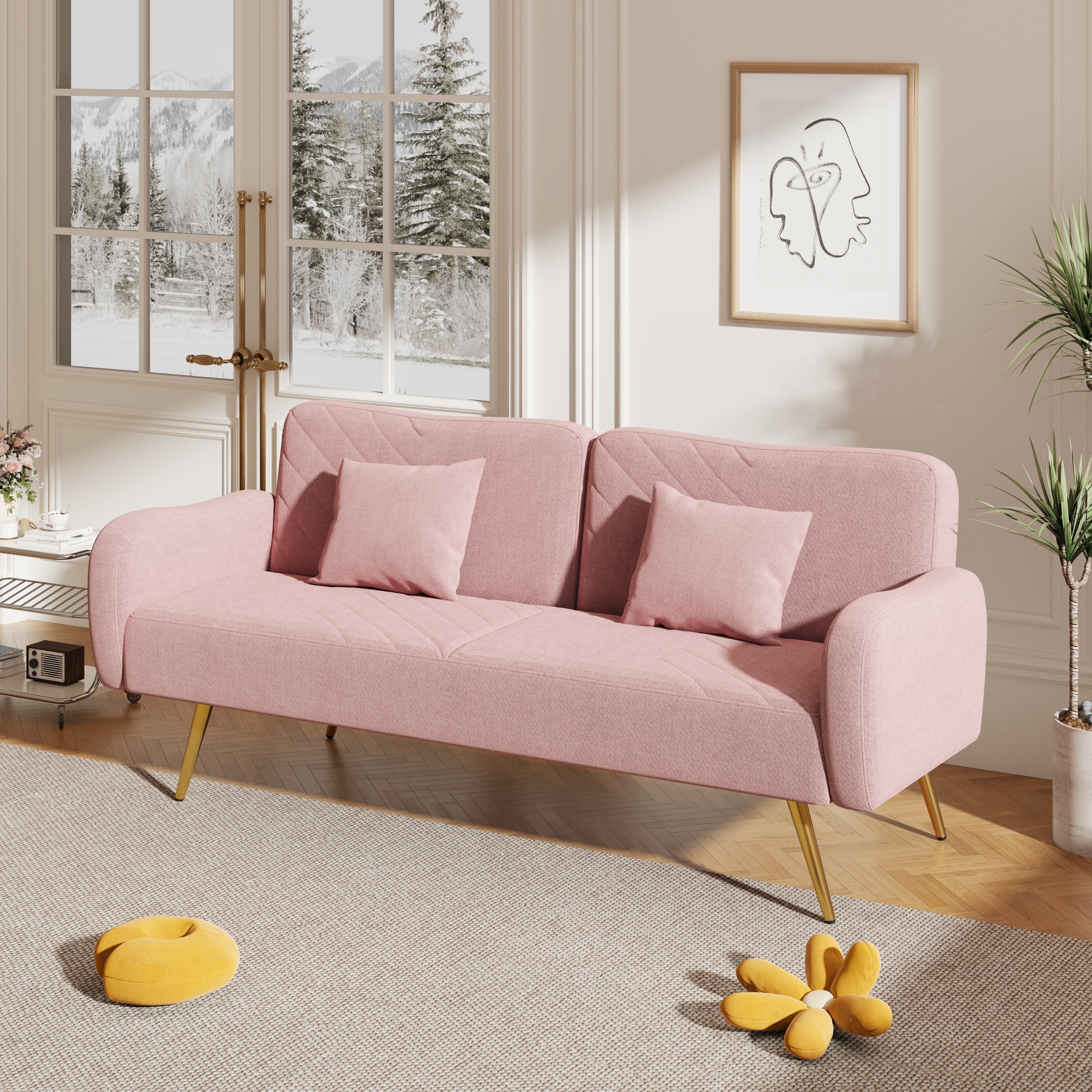 70.47" Pink Fabric Double Sofa with Split Backrest and Two Throw Pillows