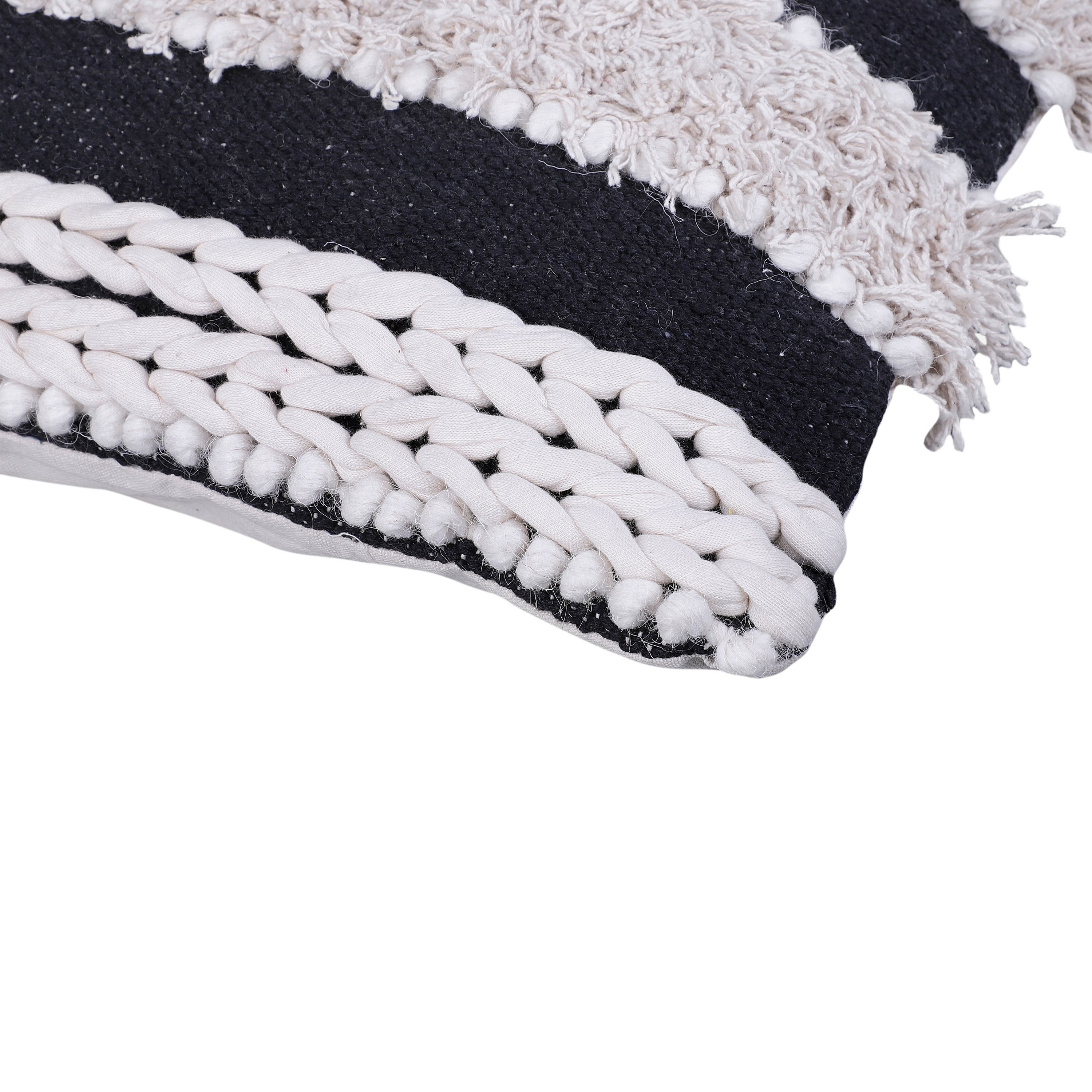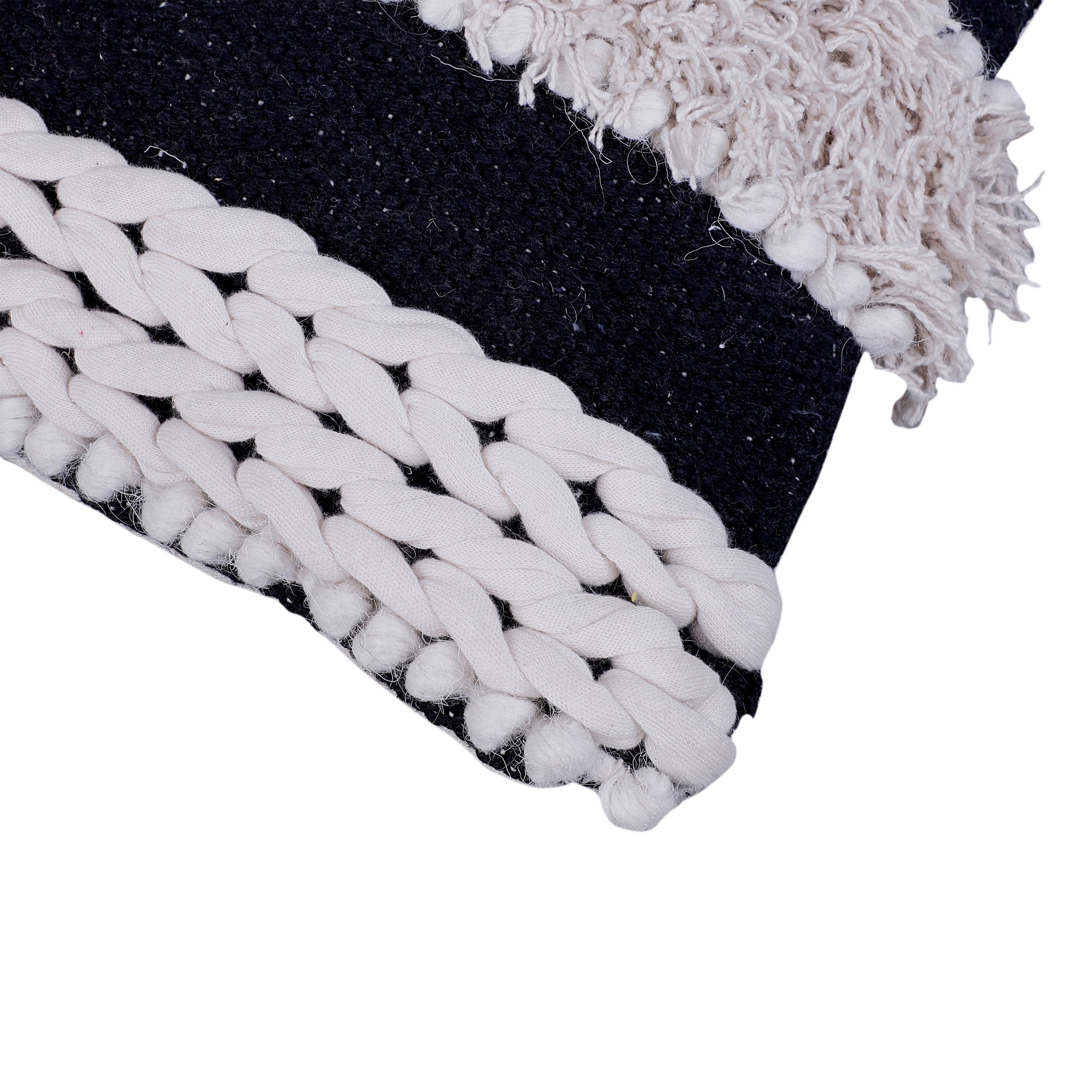 Adiv 18 x 18 Handcrafted Shaggy Cotton Accent Throw Pillows, Handknit Yarn, Set of 2, White, Black
