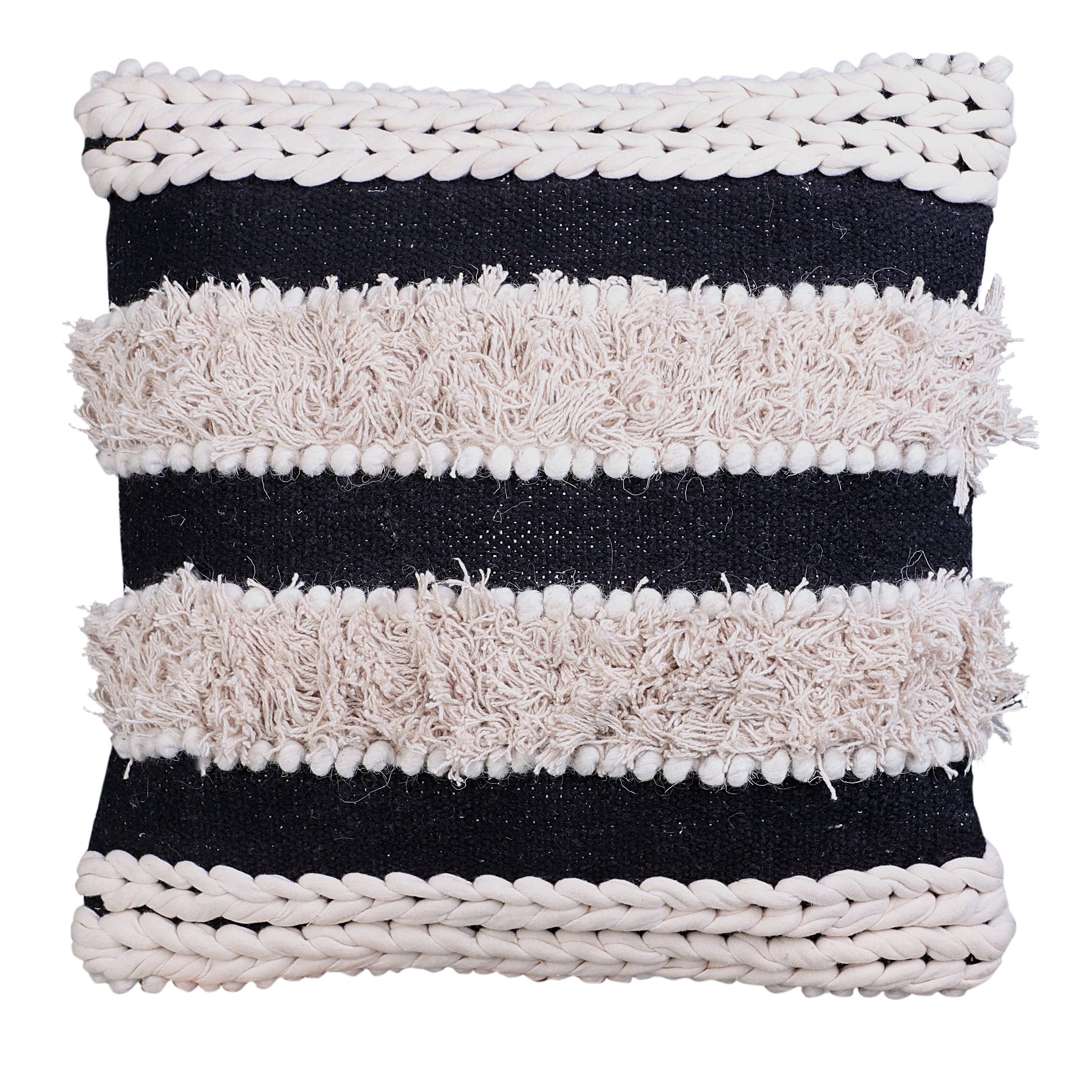 Home > Adiv 18 x 18 Handcrafted Shaggy Cotton Accent Throw Pillows, Handknit Yarn, Set of 2, White, Black