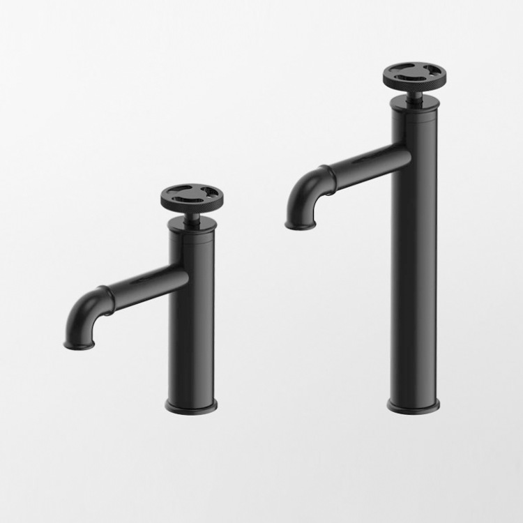 Bathroom Faucet Industrial Style Black Ancient Copper Round Handle