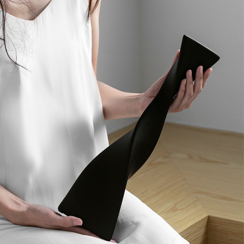 Home > Creative Floor Vase Tall Ceramic Vase Black And White Nordic Simple Spiral Vase Living Room Desktop Ceramic Ornaments Home Decor