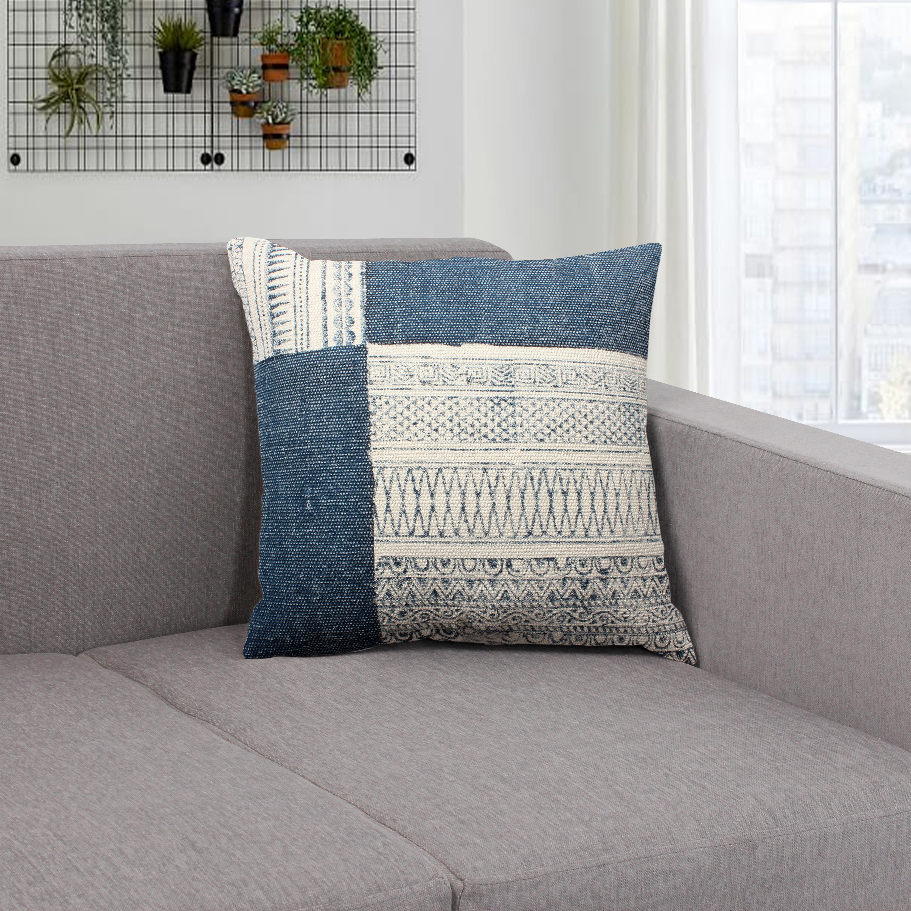 Home > Dae 24 x 24 Square Handwoven Cotton Accent Throw Pillow, Classic Simple Kilim Pattern, Blue, Off White