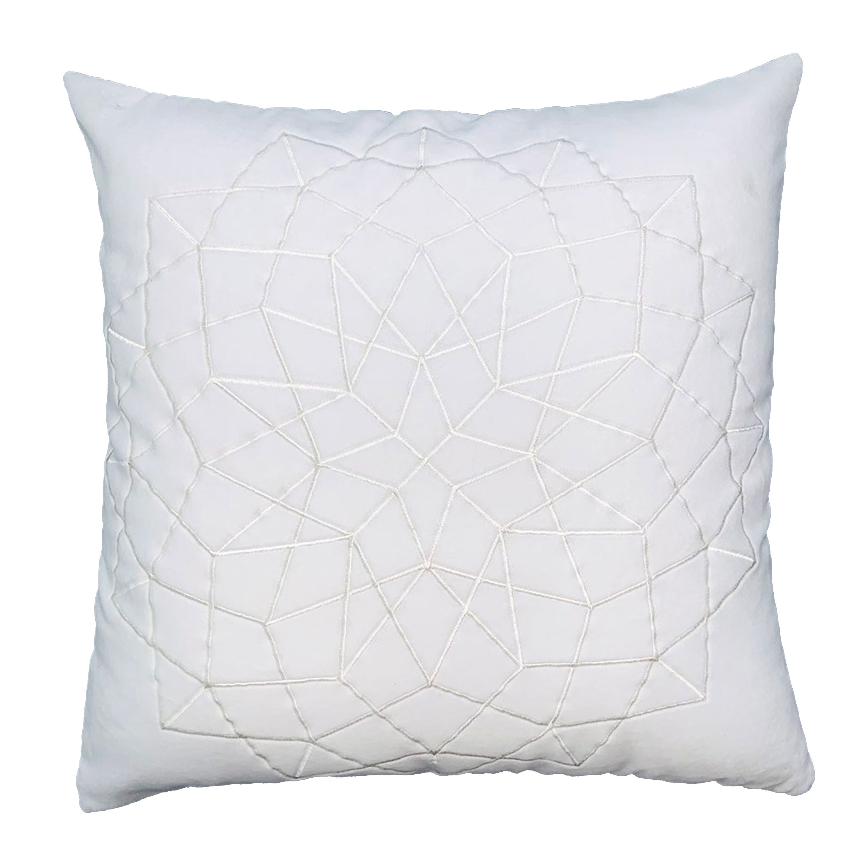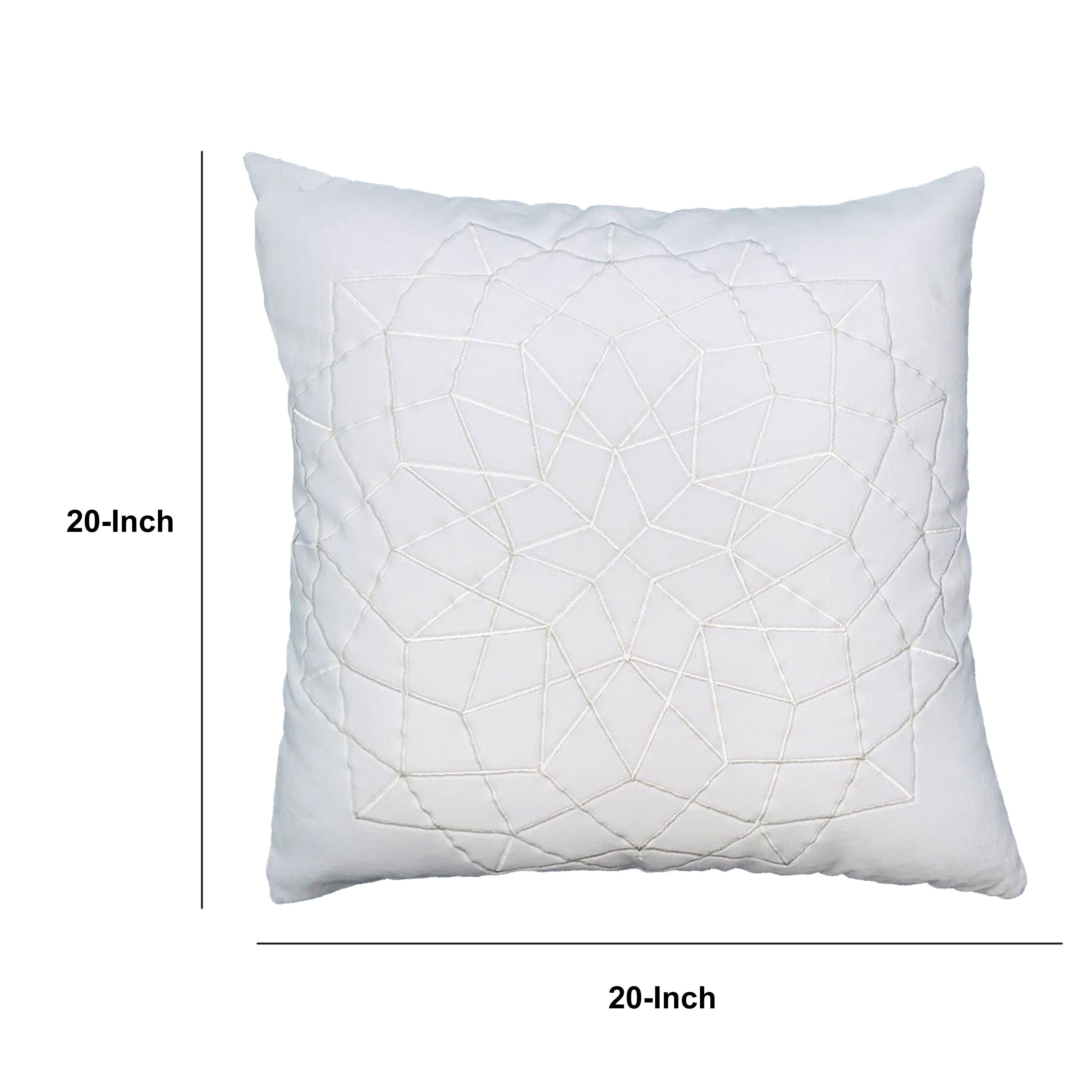 Home > Hugo 20 x 20 Square Accent Throw Pillow, Embroidered Geometric Abstract Pattern, With Filler, White