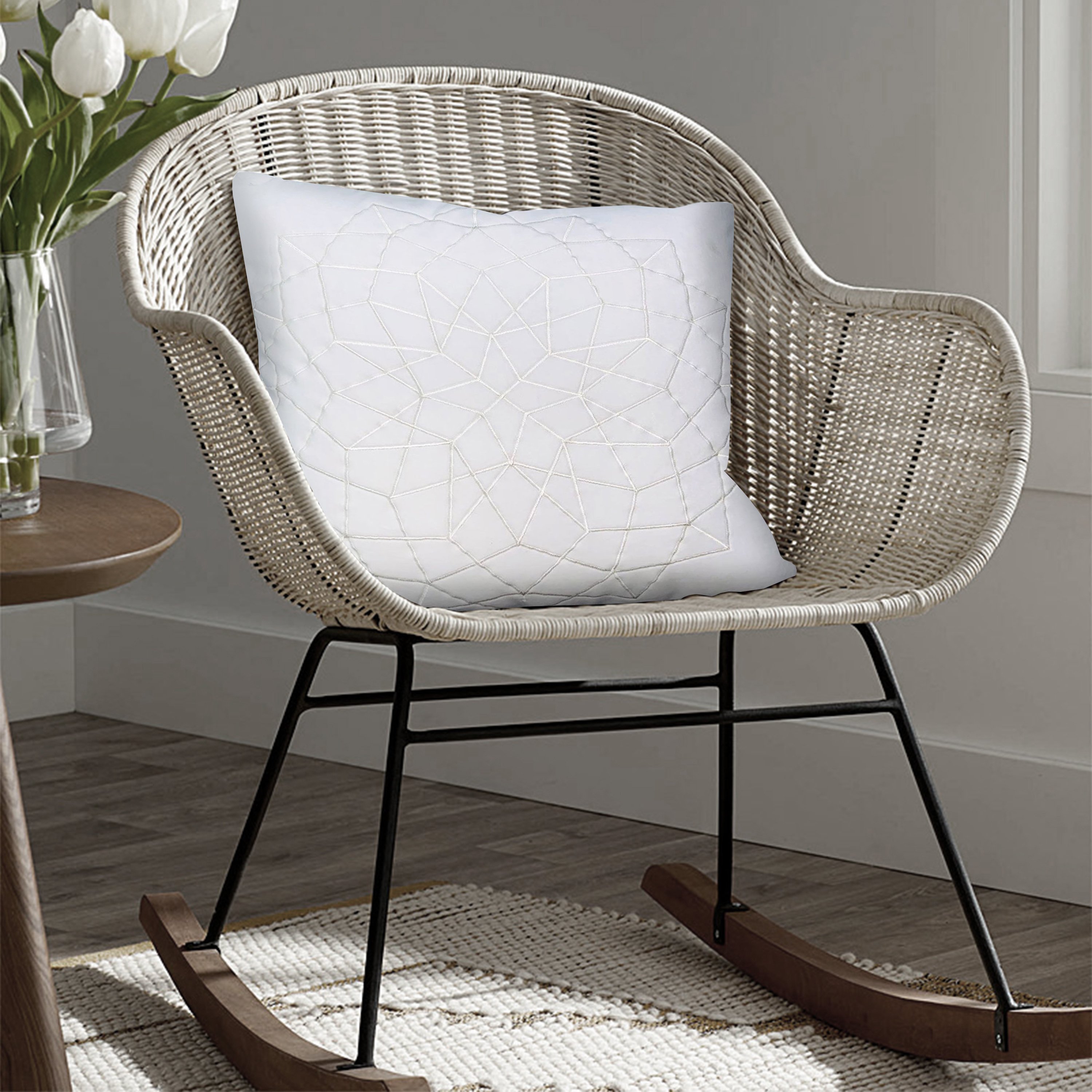 Hugo 20 x 20 Square Accent Throw Pillow, Embroidered Geometric Abstract Pattern, With Filler, White