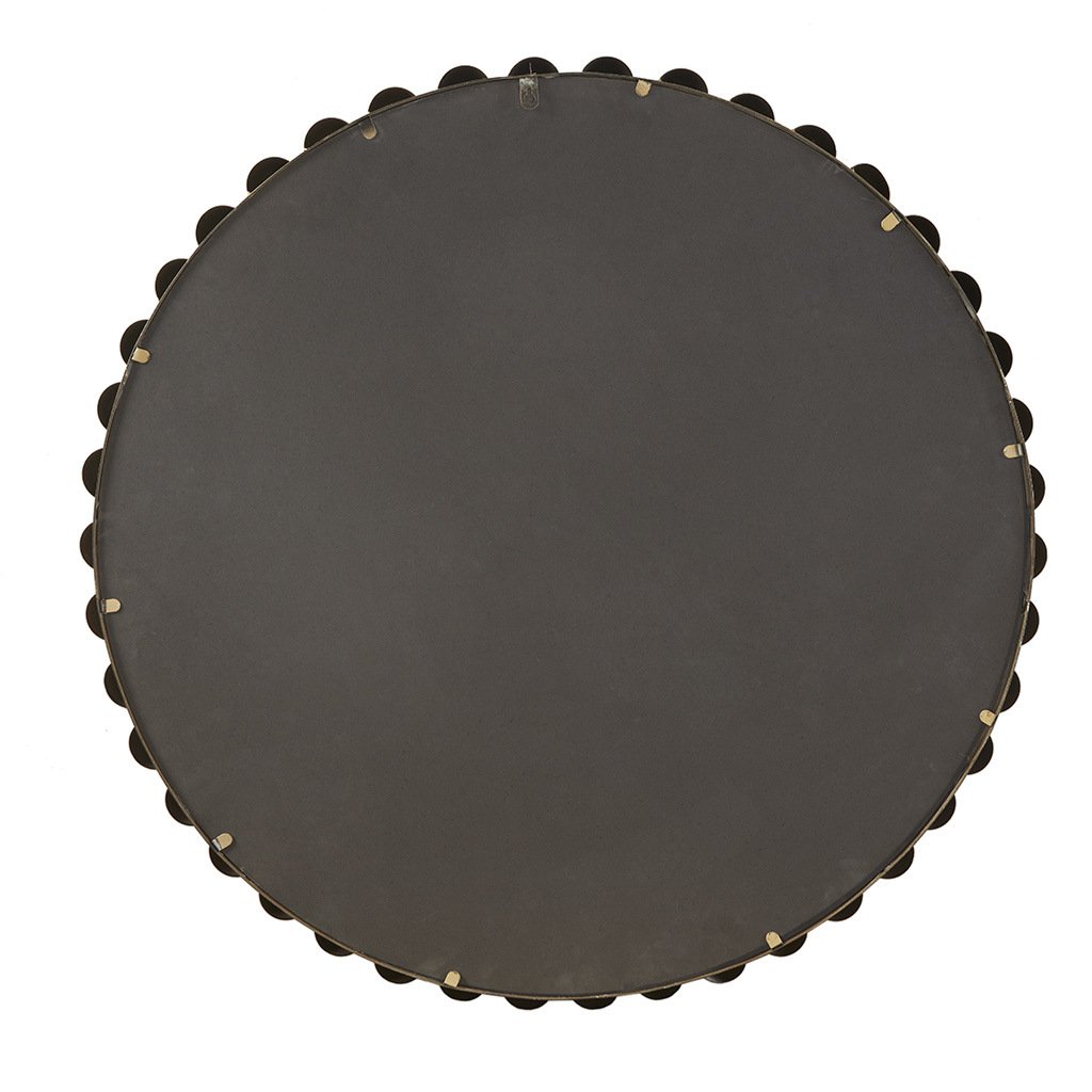Description:DescriptionReimagine your space with our Madison Park Signature Marlowe Beaded Round Wall Mirror. This round mirror features a stylized spherical iron frame finished with an antique metallic gold foil, creating a rich sheen and light speckled, distressed pattern effect. The keyhole hook fixture on the back of the mirror allows for effortless hanging on your wall. Incorporate this wall decor mirror into any room or space, for the perfect combination of modern glam and flair. Wipe clean with damp cloth and handle with care.Product Details36" DiaOverall:36"Dia x 1.8"DMirror:33.8"DiaMaterialIron: 45%Mirror: 45%MDF: 10%