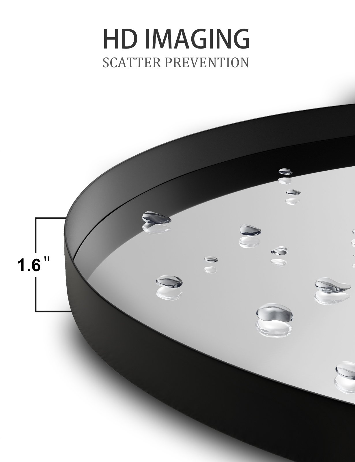 32 inch Round Black Metal Framed Bathroom Vanity Wall Mirror1.Instantly add depth and reflective beauty to any interior with this wall mirror. This striking 32×32in the handcrafted metal mirror is perfectly sized to fit almost any space and comes ready to hang for easy installation. Its versatile style makes it easy to decorative in all different living areas, from bedrooms to hall and entryways.2.The wall-mounted mirror is recessed into the metal frame, it's floated from the frame edges and protected by the surrounding metal frame construction. The mirror comes with solid core wood backing and 3 -holes hooks for safety and stability. Hand polished edges ensure safety and beauty. The round black metal frame adds elegance and class. 3.High-quality 4mm thick glass provides a clear distortion-free reflection, Will provide you really beautiful clear Portrait. The rounded corners lend a softness to the design. US SGS compliant MDF board,ensure no harm to human Premium 7mm MDF backboard prevents corrosion in bathroom environments.4.The vanity Mirror has Professional packaging, We use high-quality clear PE bags to package the mirror, ensure without any smudge during transportation. 5cm polyfoam was used put in a 1cm master box, pass a rigorous 12 point drop test at 30in height. Make sure the mirror was safe shipping.5.High quality with stylish appearance makes it perfect for housewarming gifts, Christmas gifts, Thanksgiving gifts, or other holiday gifts.6.Our Black edge Round vanity mirror use preminum quality Metal material and MDF backing to avoid both rust and corrosion when wall mounted, making it perfect bathroom mirrors for vanity. Modern and Sleek, Simple yet elegant. Which able to greatly live up your space. Easily enhance the beauty of your any rooms.