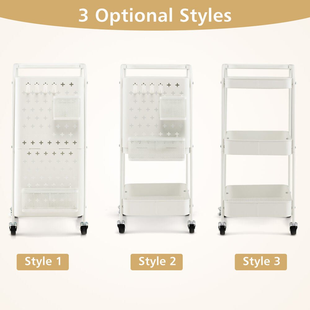 Home > Multifunction 3-Tier Utility Storage Cart Metal Rolling Trolley W/ DIY Pegboard Baskets