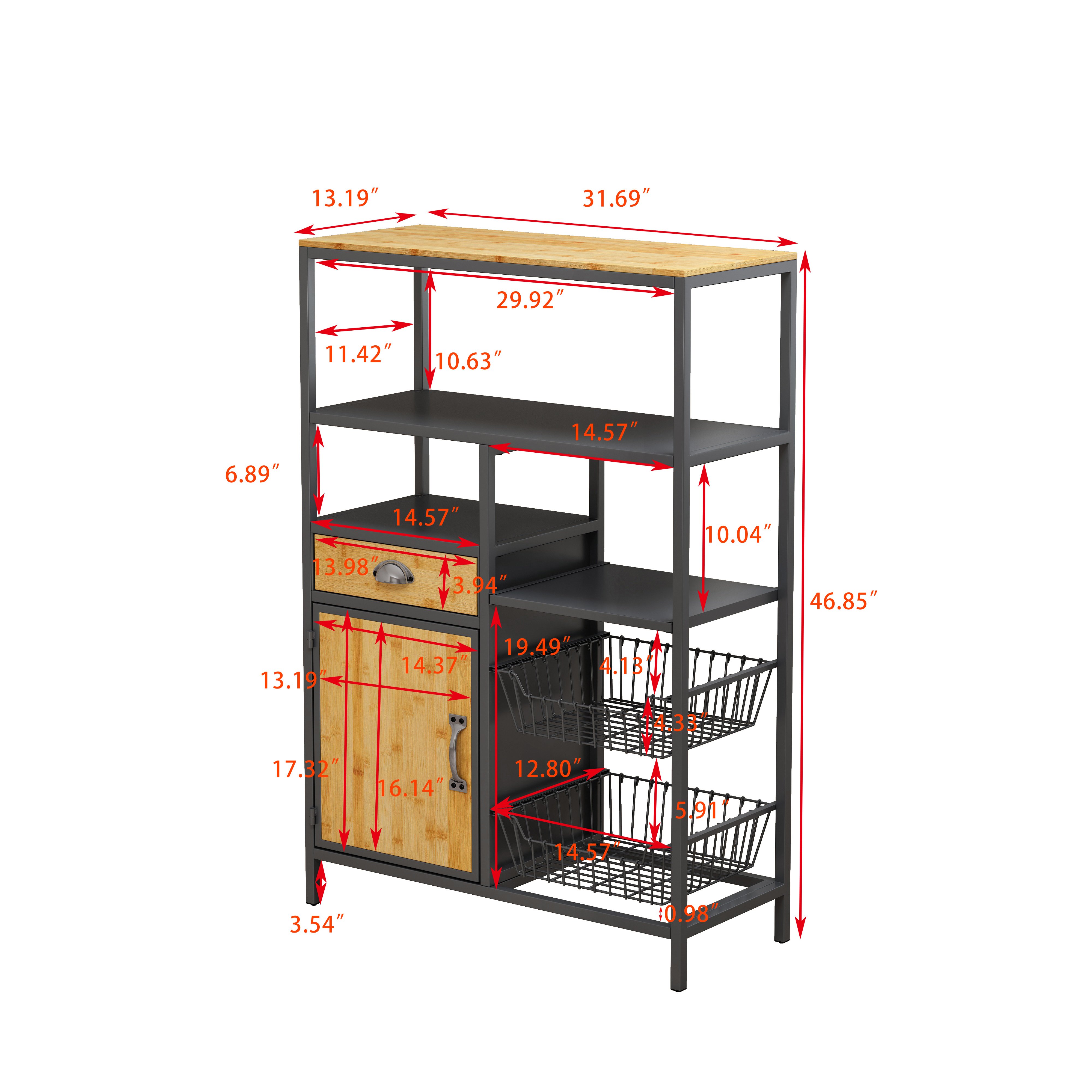 Description:Notice:1. Due to lighting or display, the actual product color may differ slightly from the image. 2. Manual measurement was used, and there may be some reasonable errors.Specifications:ColorDark Gray+BrownMaterialIron+Carbonized BambooProduct Dimension31.69"L x 13.19"W x 46.85"HWeight CapacityTop Board: 80 lbs, Shelf: 35 lbs, Drawer:15 lbs, Storage baskets:15 lbsAssembly RequiredYesPackage Number1