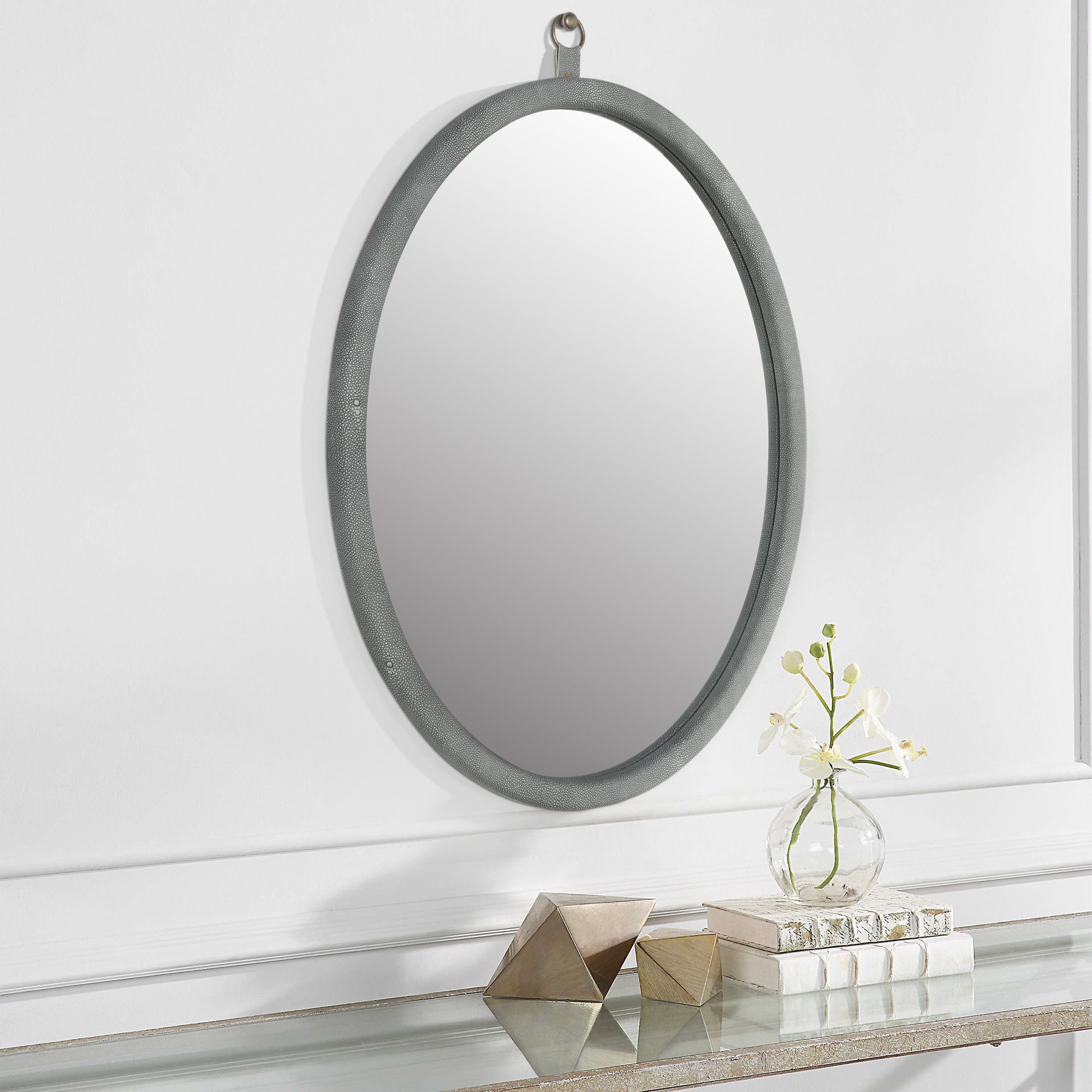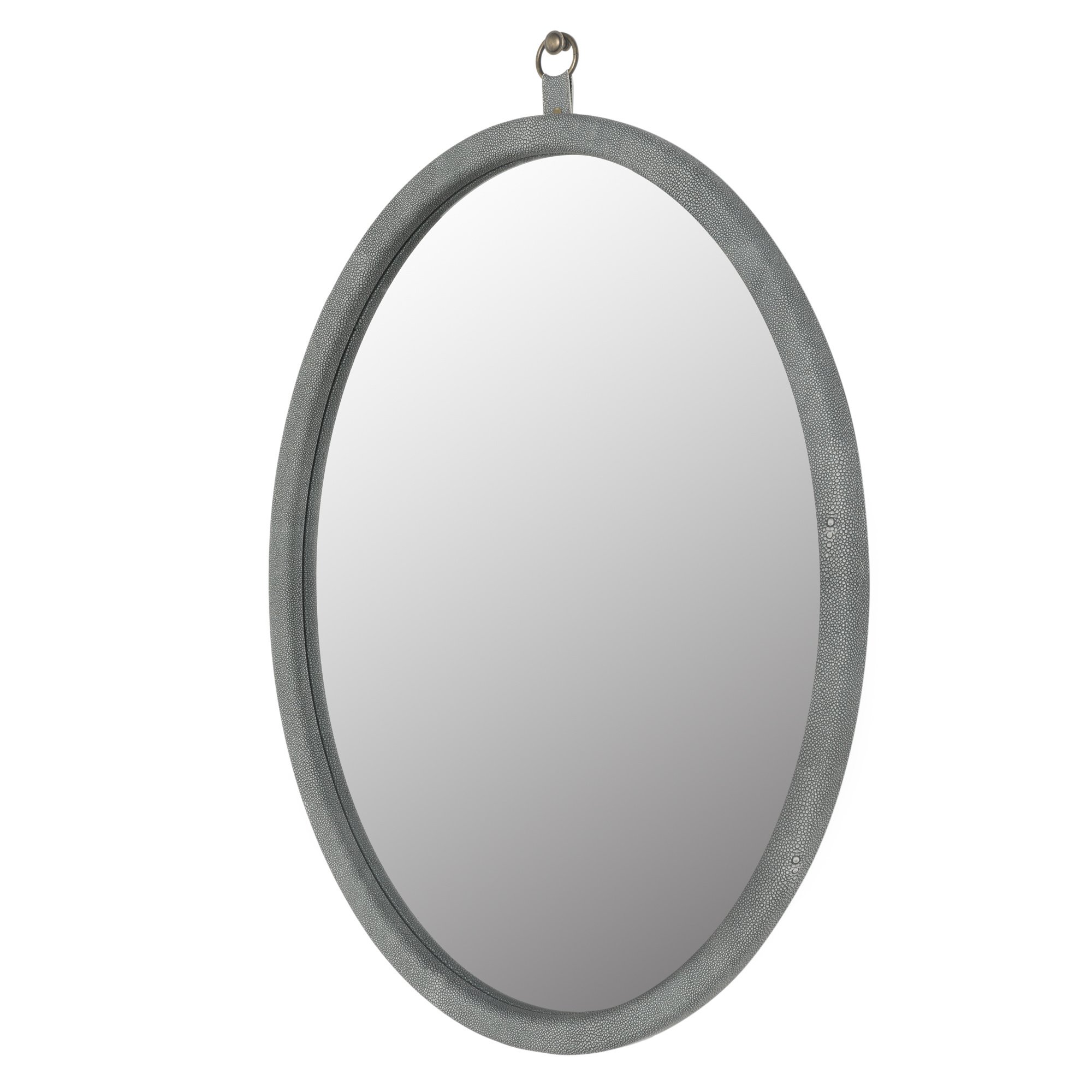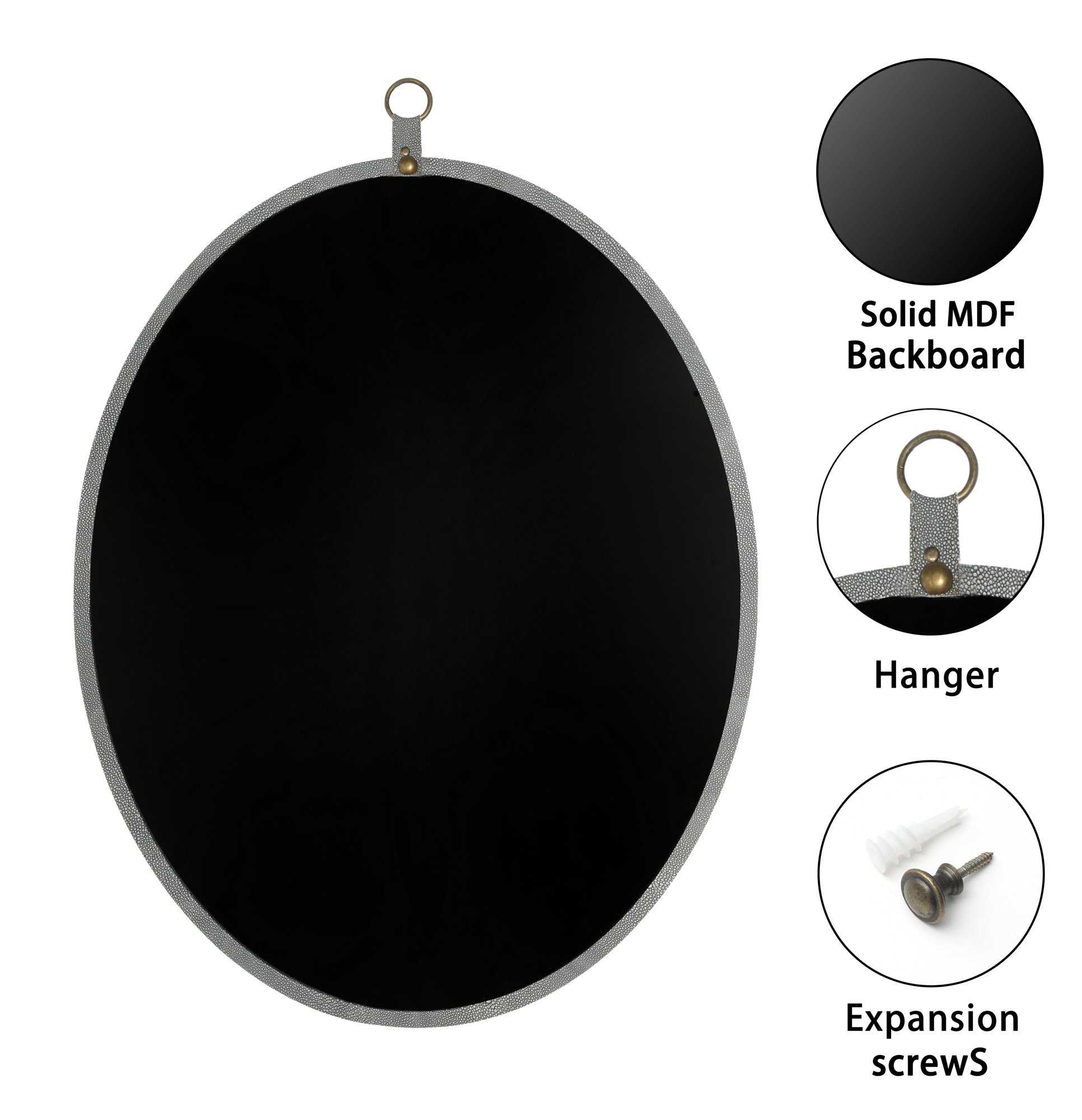 Home > Oval Shagreen Decorative Wall Hanging Mirror,PU Covered MDF Framed Mirror for Bedroom Living Room Vanity Entryway Wall Decor,23.62x29.92inch