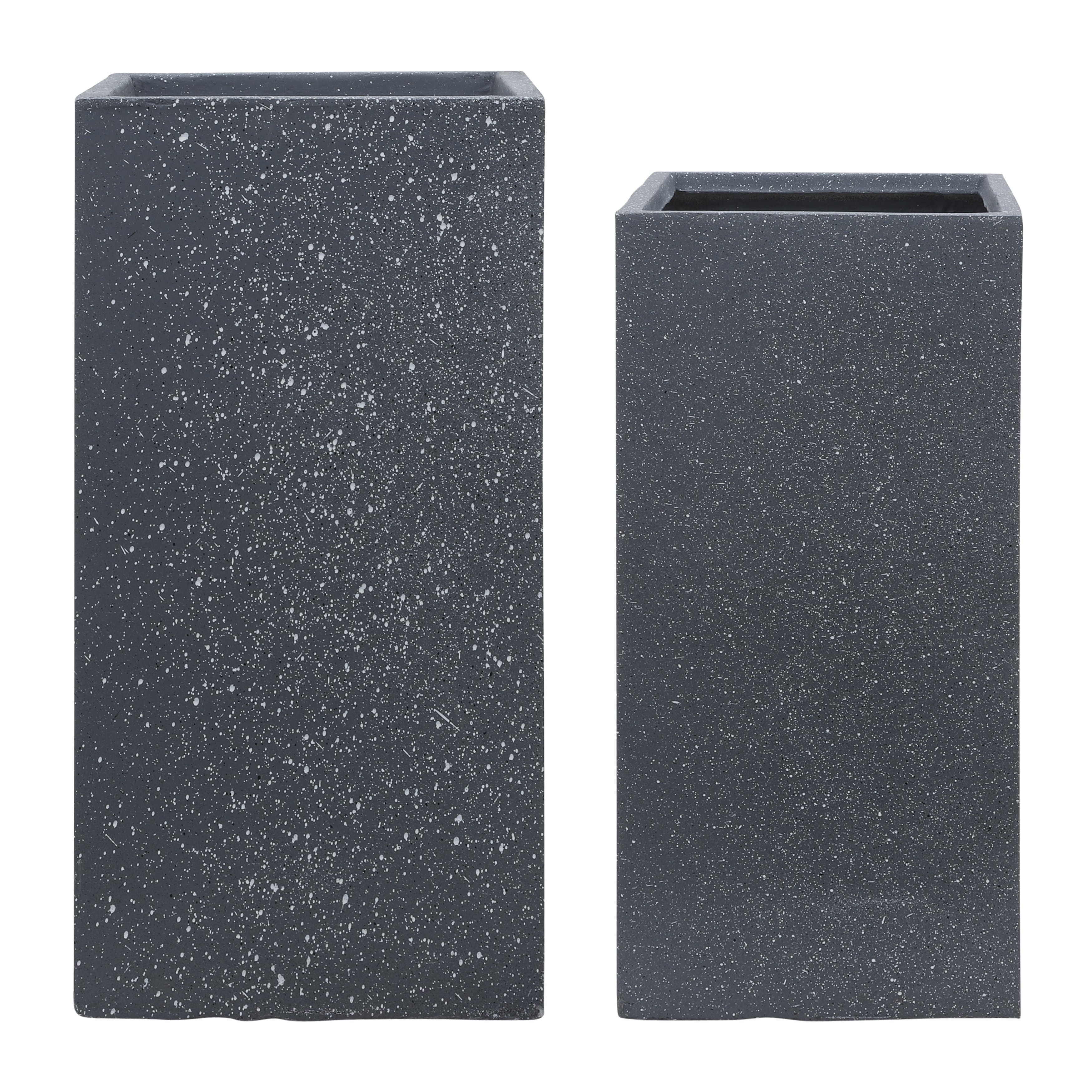 RESIN, S/2 11/13"D SQUARE NESTED PLANTERS, DK GRAY