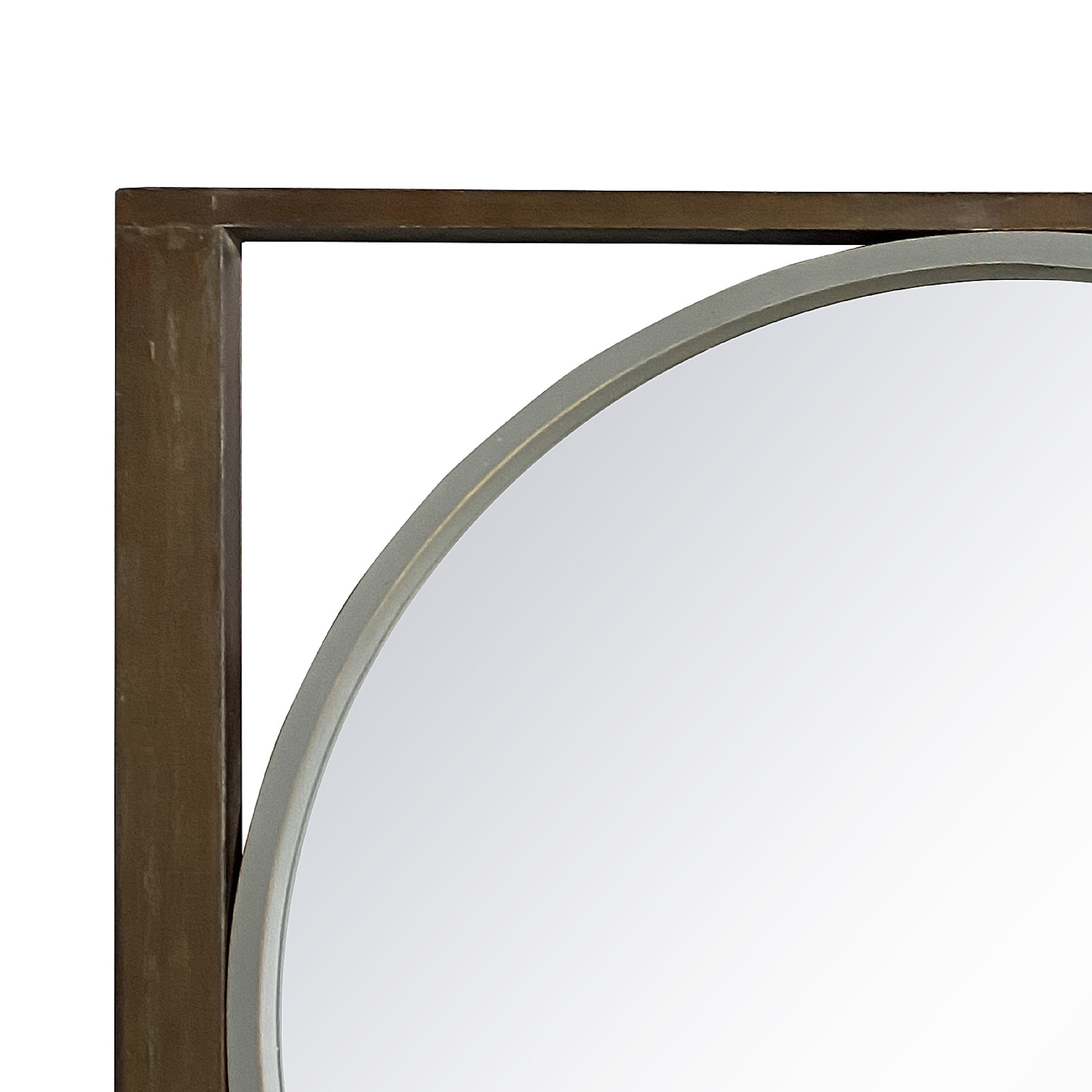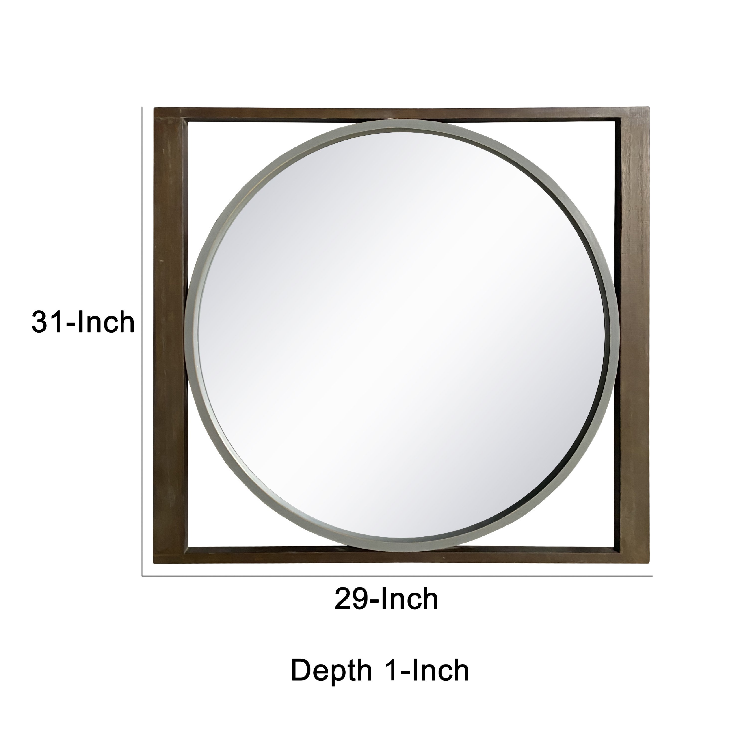 Home > Round Wall Mirror with Rectangular Wooden Frame, Brown