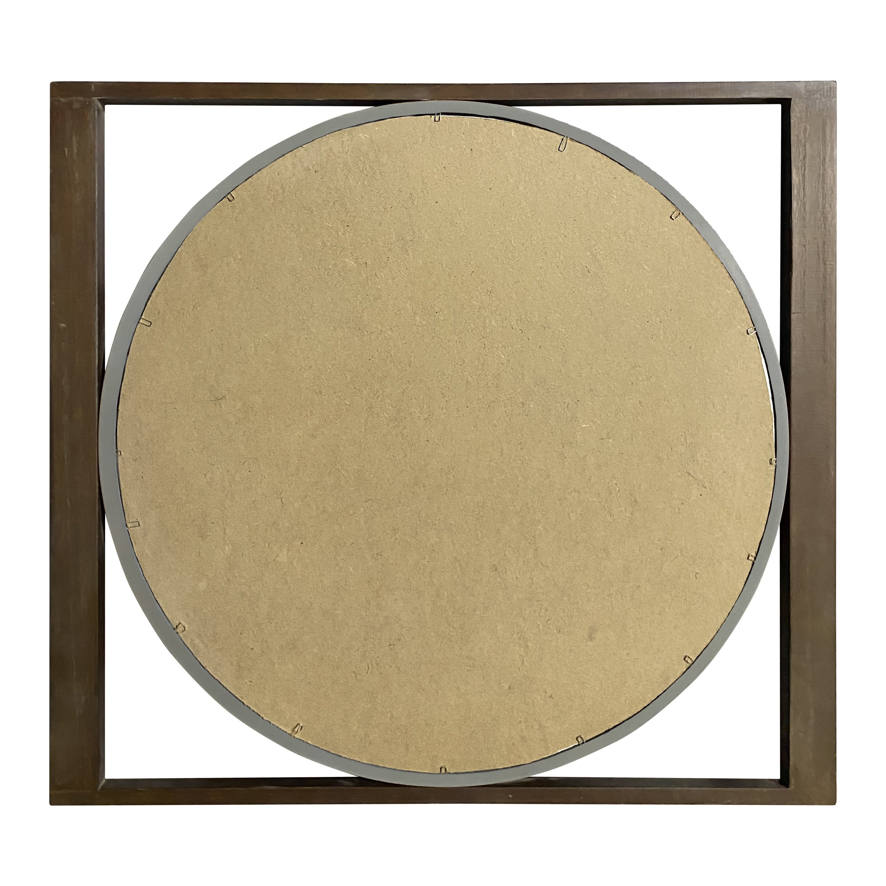 Round Wall Mirror with Rectangular Wooden Frame, Brown