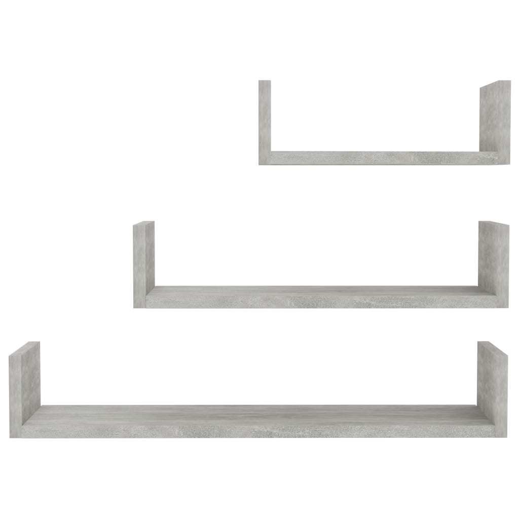 1.Wall Display Shelf 3 pcs Concrete Gray Chipboard